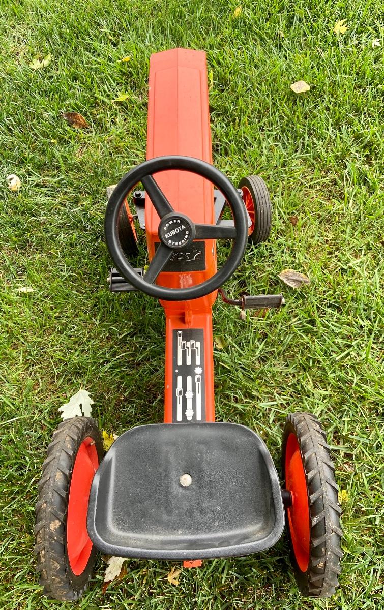 Kubota metal, pedal tractor for kids. The pictures show condition, measurements if taken, and what is included in the lot. Due to the large amount that we photograph and the time frame, we are not always able to take measurements. All items unless noted, are pre-owned and have been used. If you purchased furniture, you must bring help. We do not allow one person to carry large furniture out on their own. Bring help, tools and a truck for the safety of our client’s homes, and your personal safety. Company policy. Thank you.