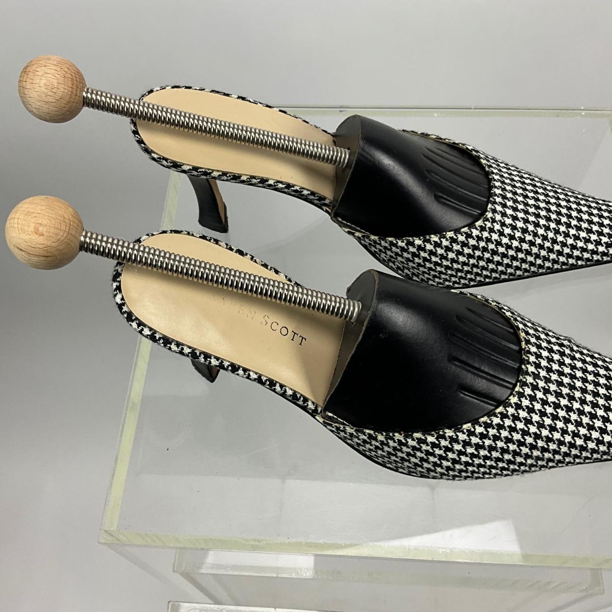 Lot 463 Karen Scott, Black/White Herringbone Slip-On Mules with Heels ( Size 9 )