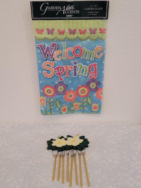 Lot 465: New Welcome Spring Garden Flag and Wind Chime