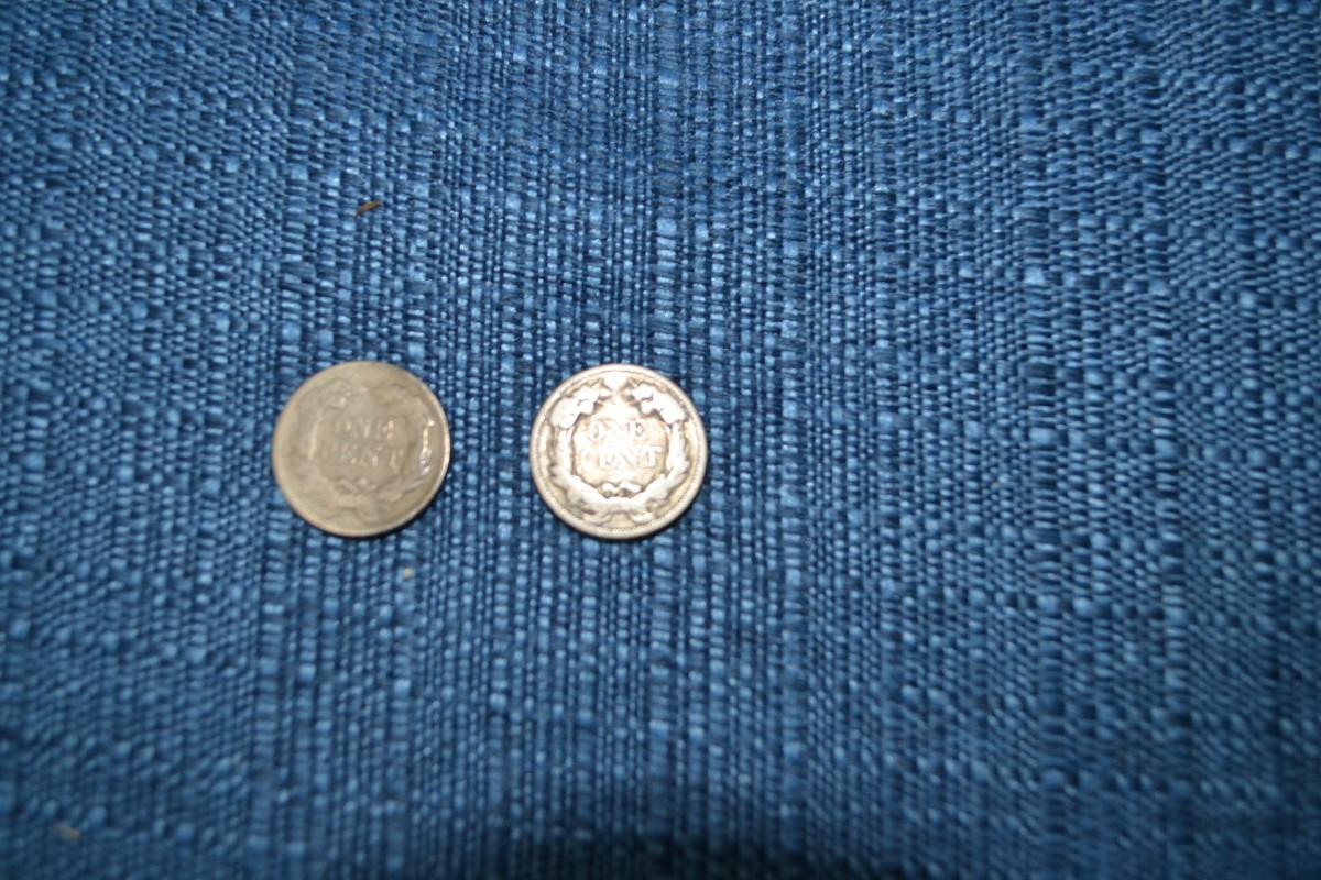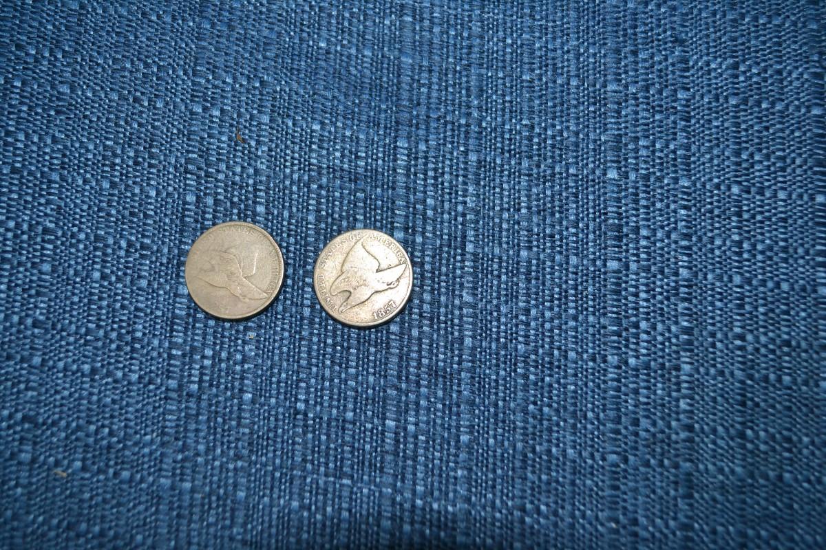 TWO 1857 FLYING EAGLE ONE CENT COINS