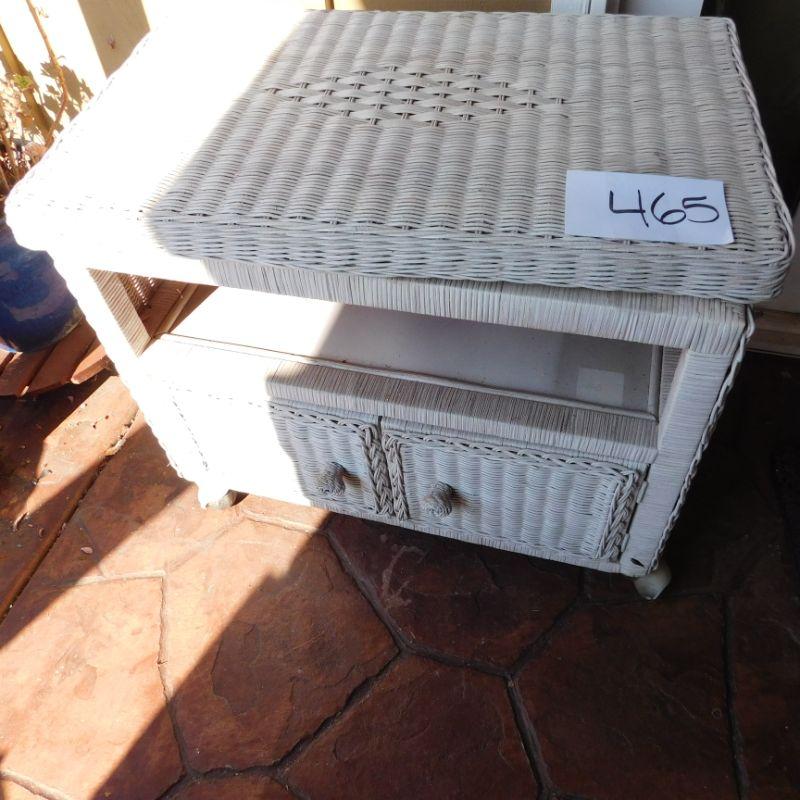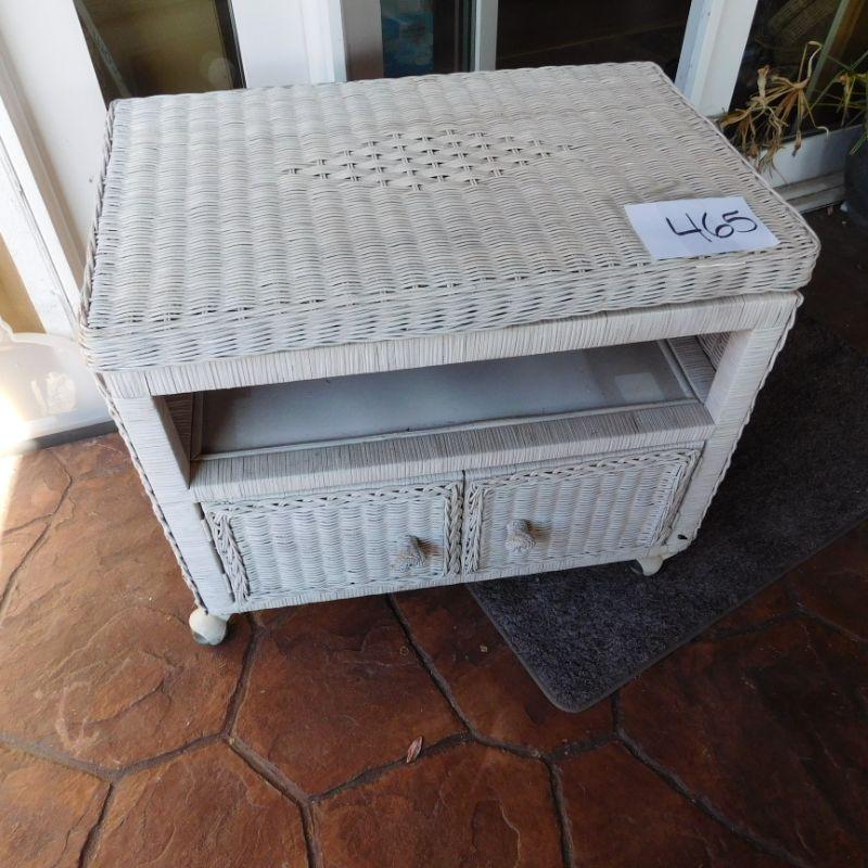 Lot 465 wicker TV stand 26 inches wide 17 inches deep 22 inches tall with swivel top