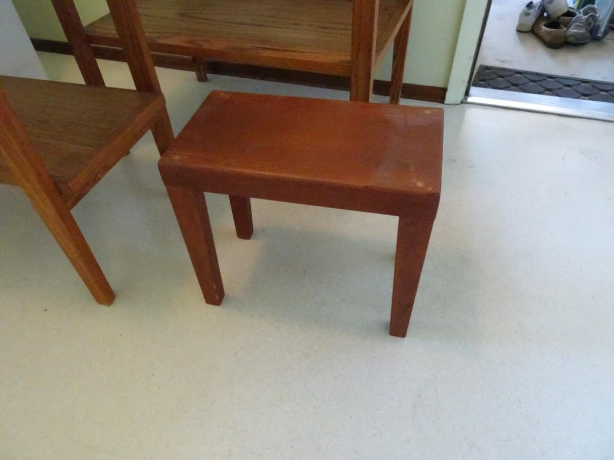 LOT 466. TWO SIDE TABLES AND WOOD FOOT STOOL