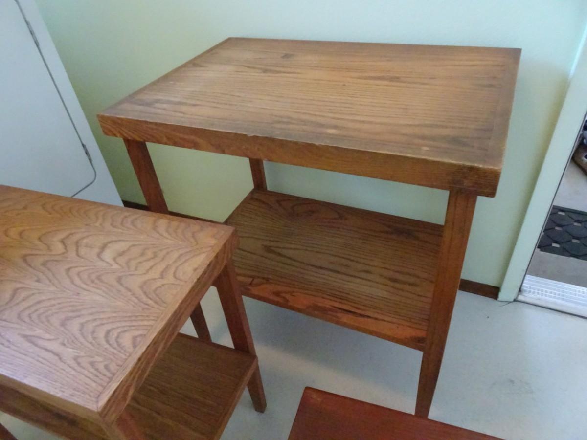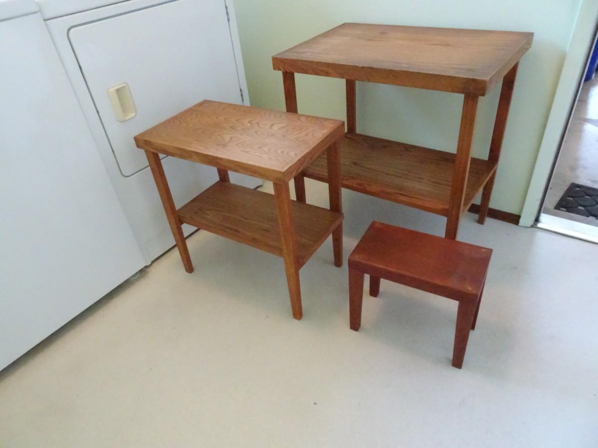 LOT 466.   TWO SIDE TABLES AND WOOD FOOT STOOL