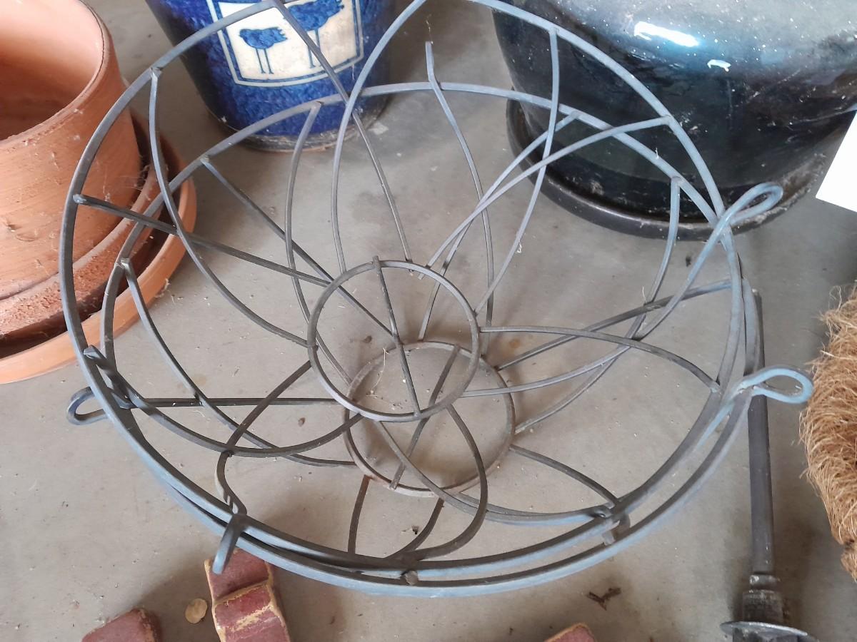 LOT 467 CERAMIC FLOWER POTS, AND METAL MESH POTS