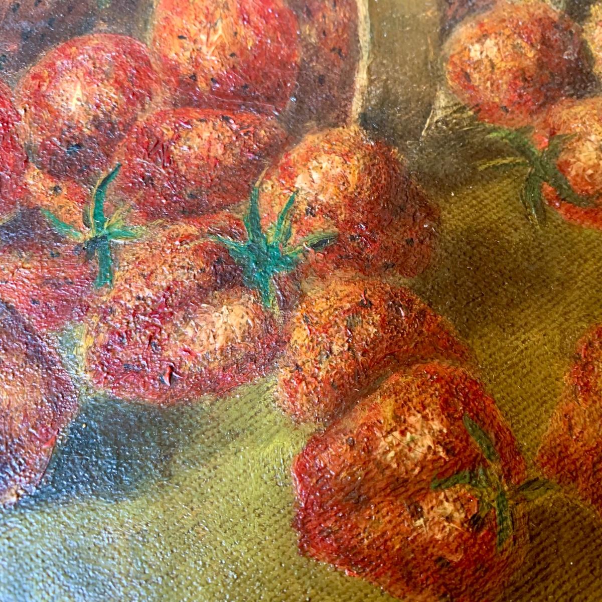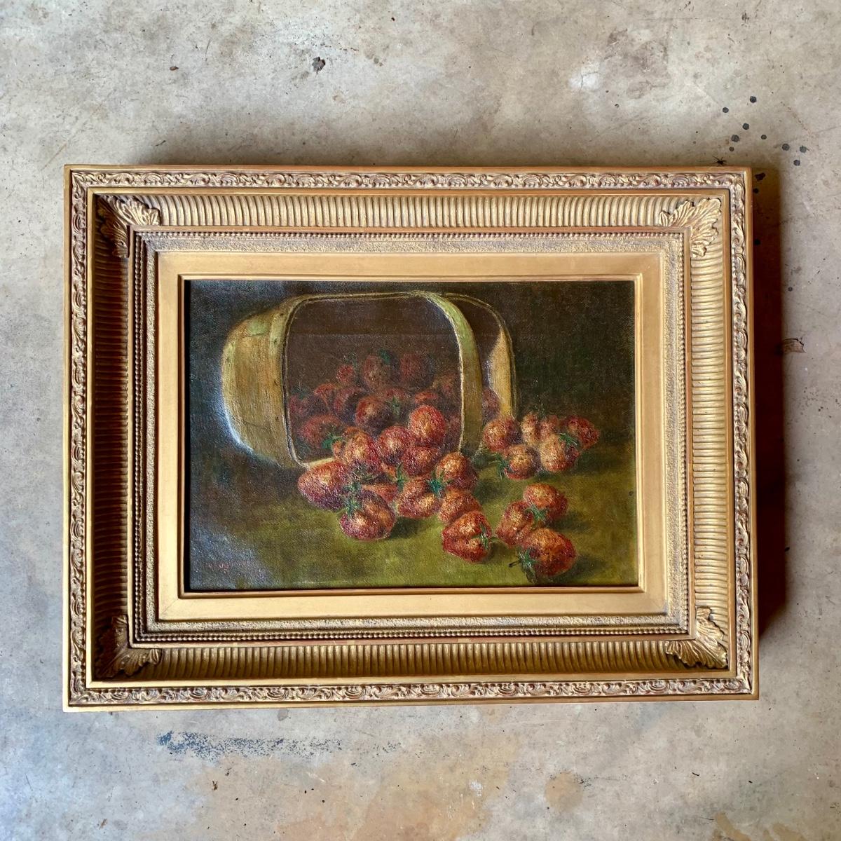 LOT 467 G: Framed & Signed Oil Painting Spilled Strawberry Basket