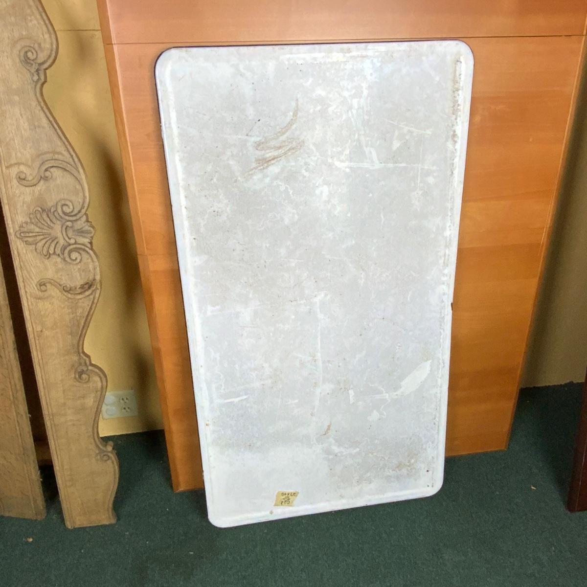 Hoosier Cabinet Porcelain Counter. Fair condition. Could be used for decor in your home too-just use magnets! //::\\ Please see photos for details and condition. No attempt has been made to hide any imperfections. All items listed in this auction are warehouse items, and need to be cleaned. A majority of the items need restoration as well. All items are sold AS IS and WITHOUT GUARANTEE. If you are uncertain about an item, DO NOT BID. Due to the nature of this online auction in-person inspection is HIGHLY recommended. All Sales are FINAL. Pick Up Times are FIRM. Please confirm with your own schedule that you can pick up in the scheduled times listed in the Terms and Conditions. Any questions please message the auctioneer. DO NOT Contact The Harp Gallery.