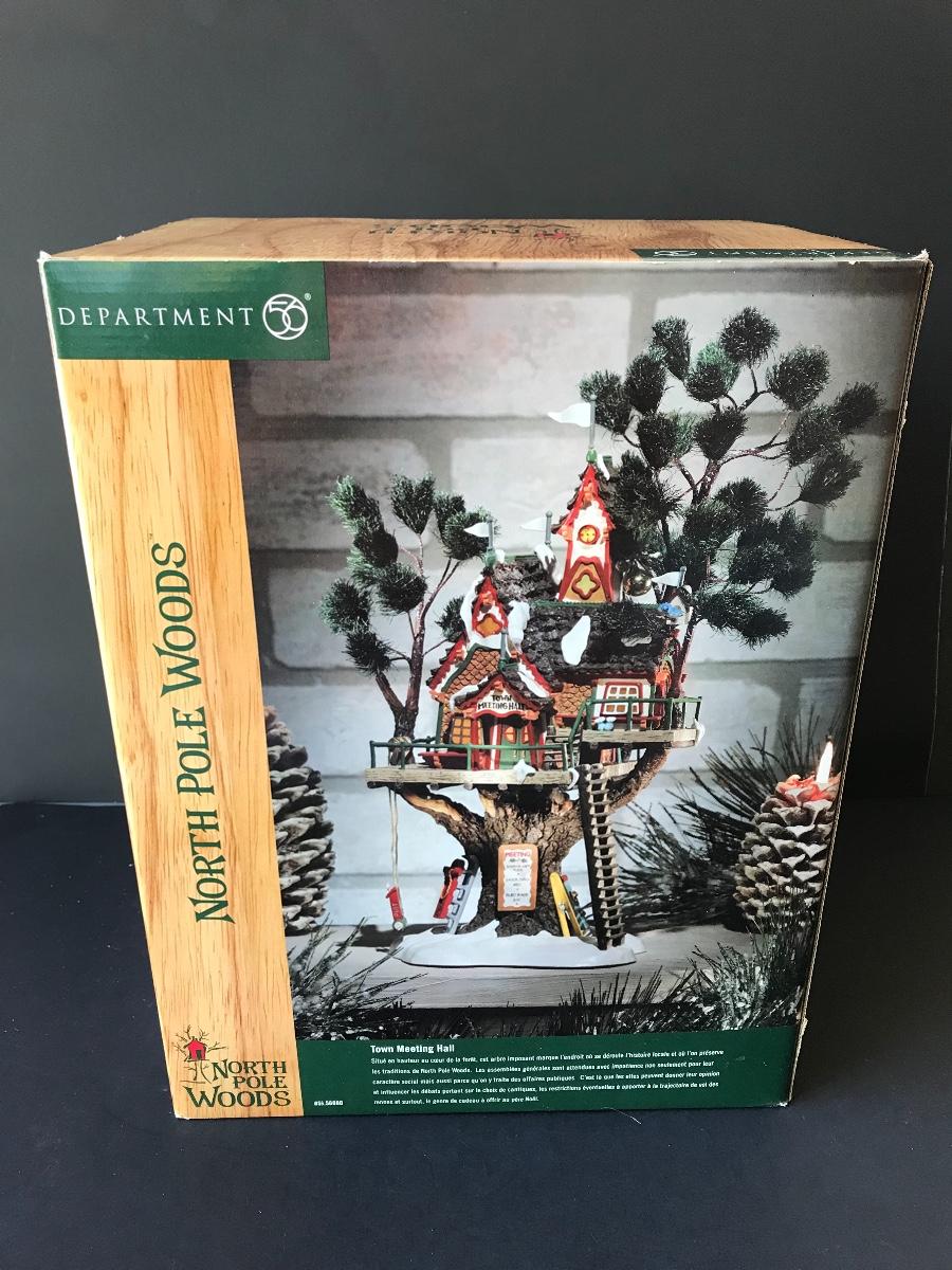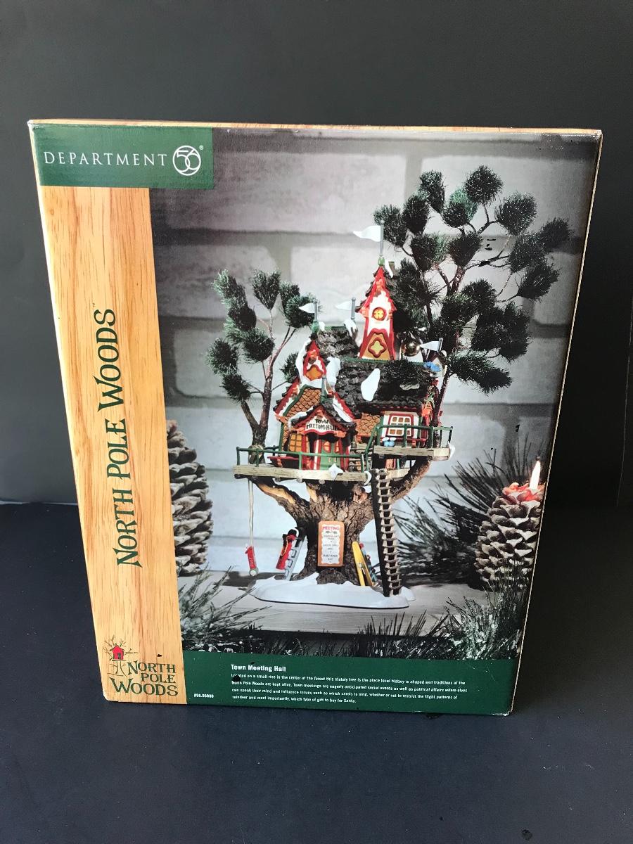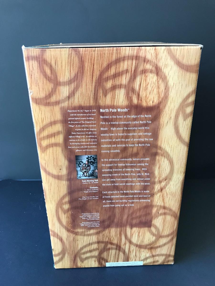Department 56 - Town Meeting Hall - North Pole Woods Christmas Display. No Power Adapter. All Holiday items in this auction are as-seen. The client collected a lot of holiday pieces and some are new in box, some were displayed once and come with original box, and some have been displayed and come with no box. They are all pre-owned in some fashion and have been stored in an attic or on shelf in library. Please see all pictures. The pictures show condition, measurements if taken, and what is included in the lot. Due to the large amount that we photograph and the time frame, we are not always able to take measurements. All items unless noted, are pre-owned and have been used. Thank you