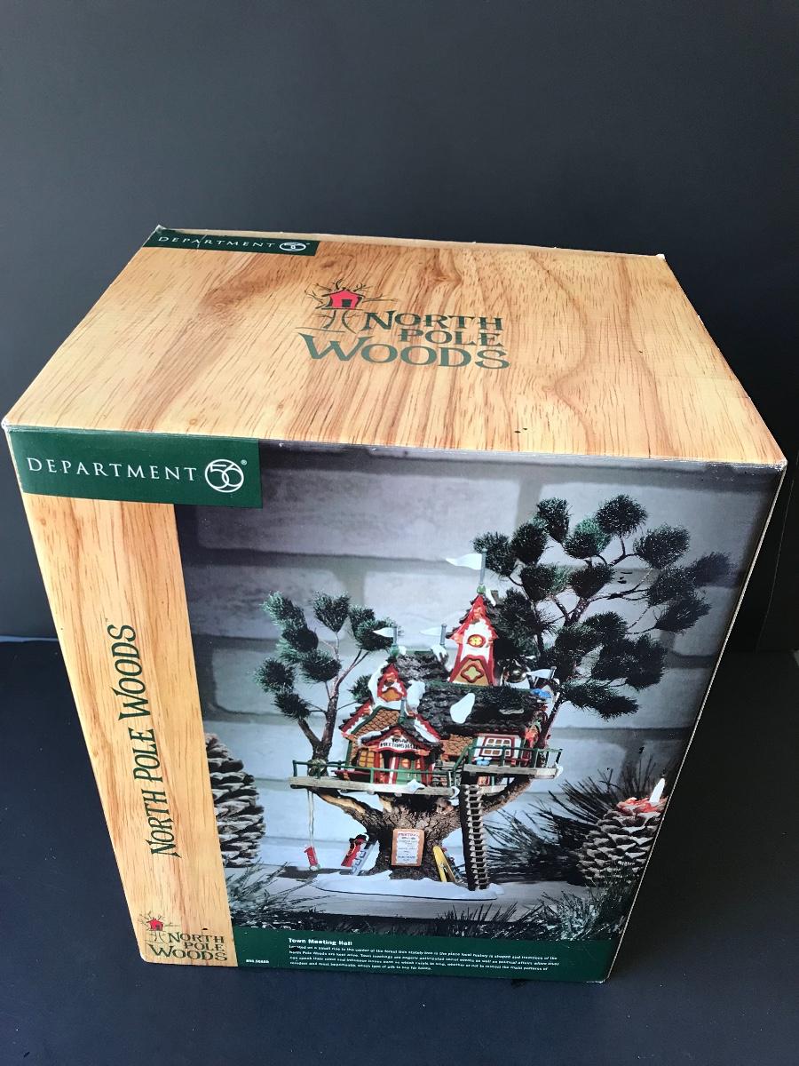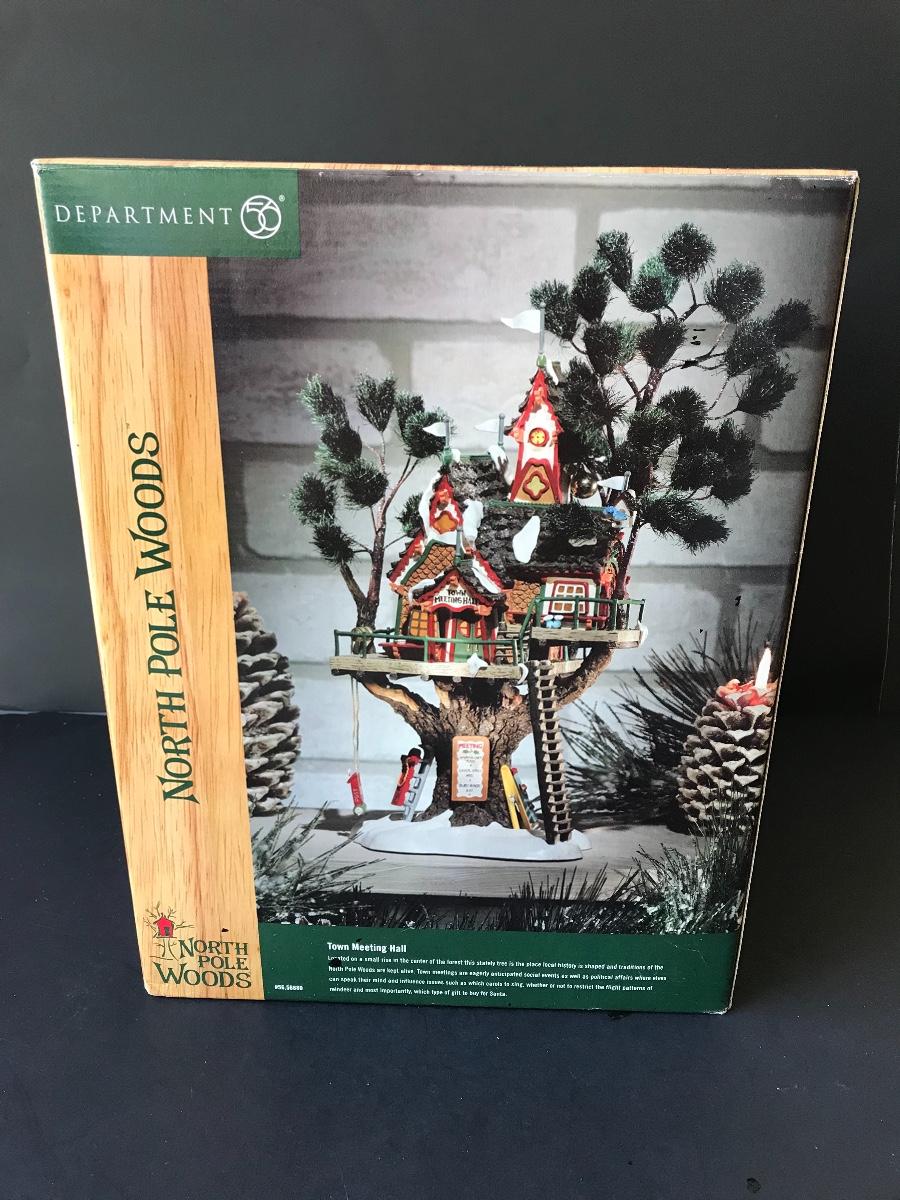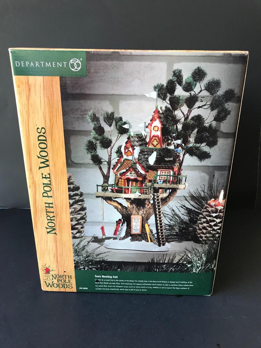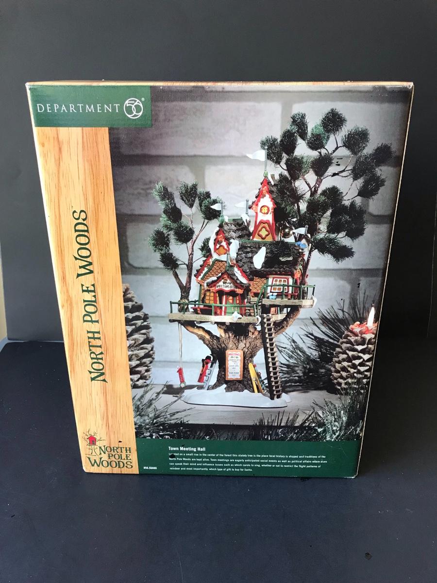Department 56 - Town Meeting Hall - North Pole Woods Christmas Display. No Power Adapter. All Holiday items in this auction are as-seen. The client collected a lot of holiday pieces and some are new in box, some were displayed once and come with original box, and some have been displayed and come with no box. They are all pre-owned in some fashion and have been stored in an attic or on shelf in library. Please see all pictures. The pictures show condition, measurements if taken, and what is included in the lot. Due to the large amount that we photograph and the time frame, we are not always able to take measurements. All items unless noted, are pre-owned and have been used. Thank you