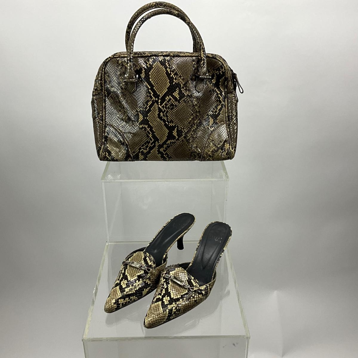 Lot 468 Stuart Weitzman, Snakeskin Mules ( Size 10 ) & Via Spiga Matching Handbag