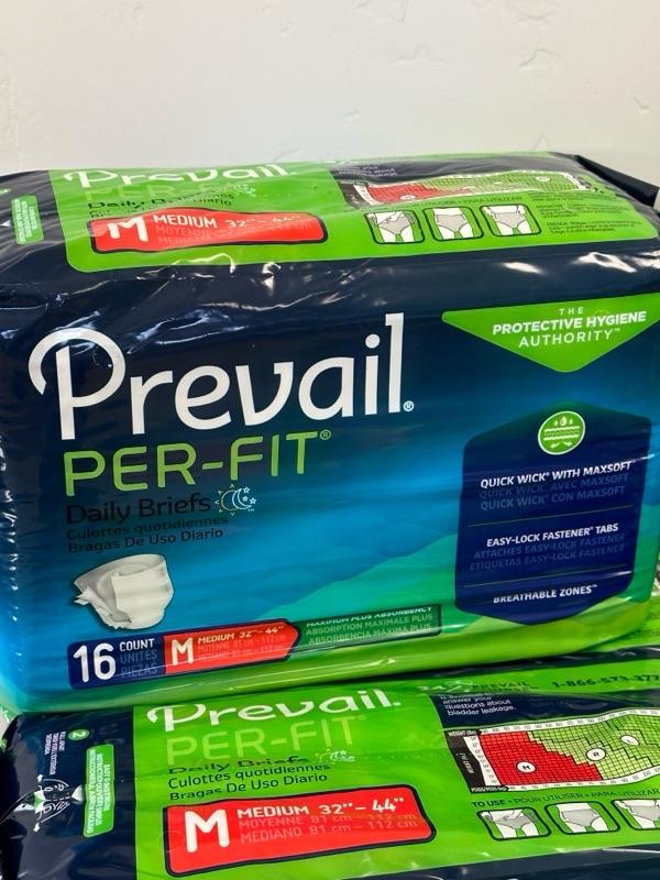 Lot 469 Case of 96 prevail daily, disposable briefs, size medium, 32 inch to 44 inch