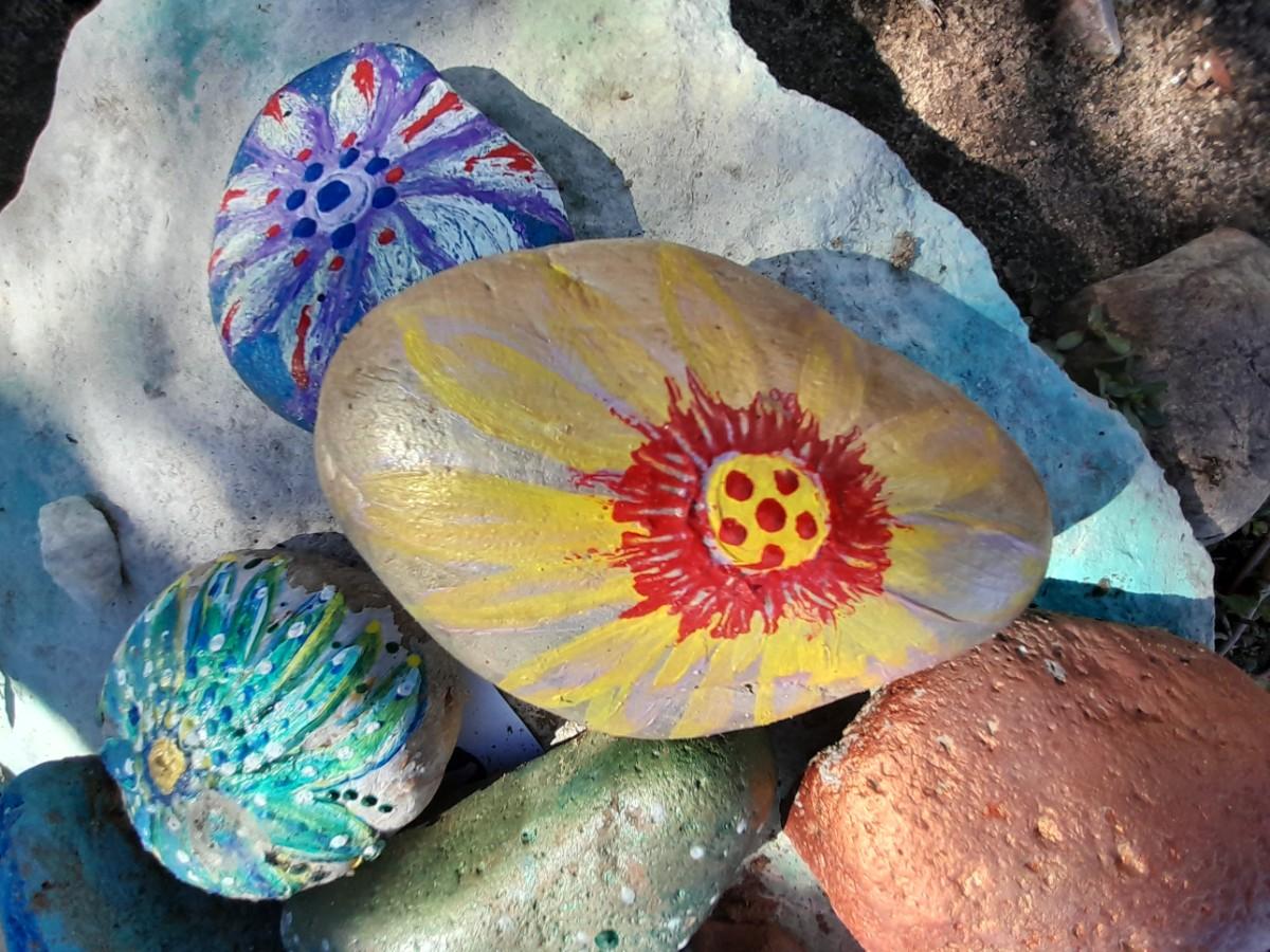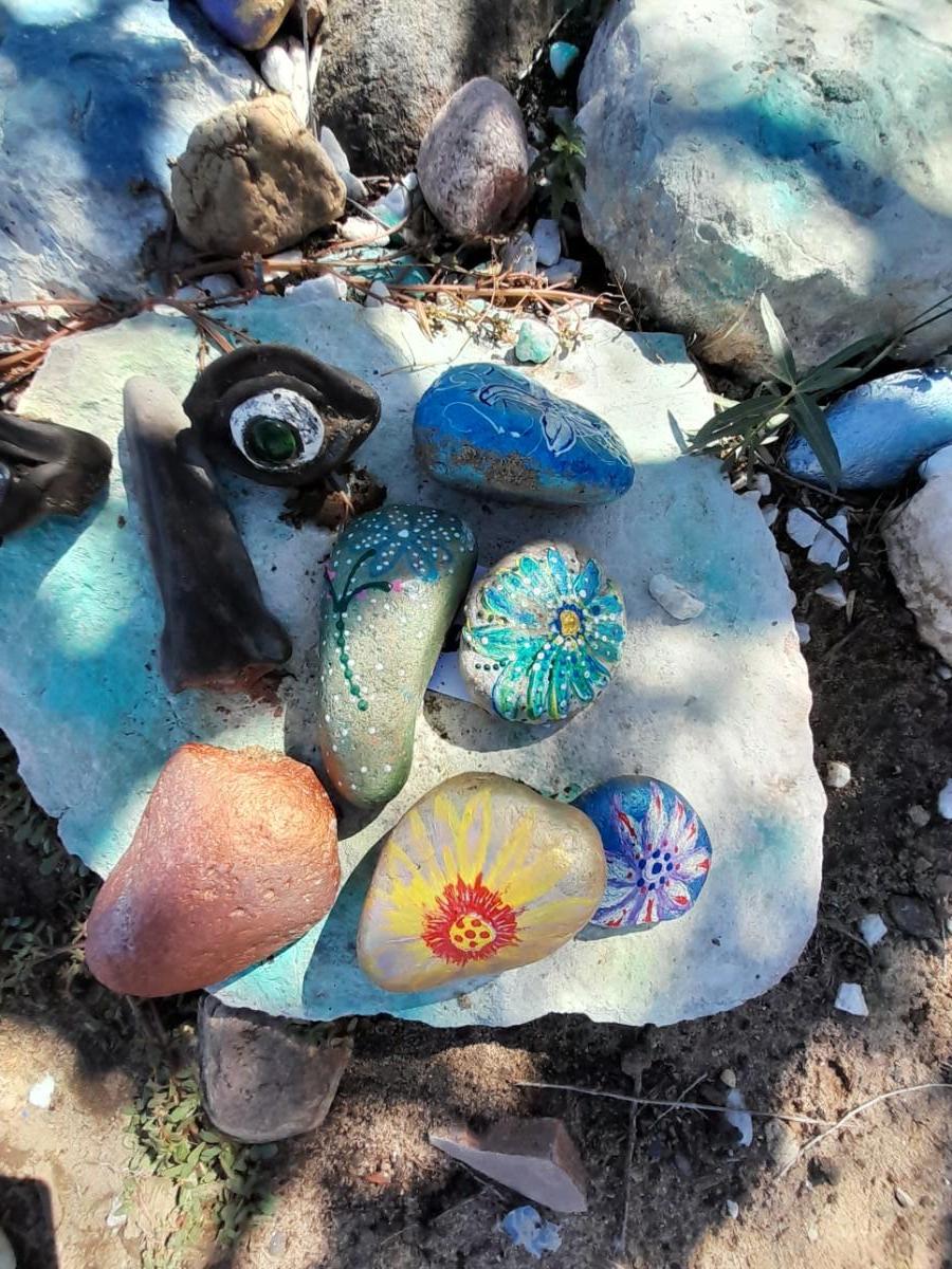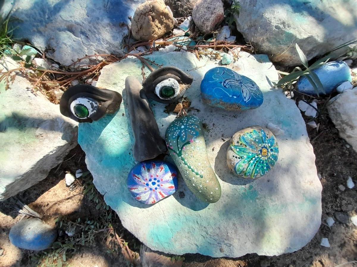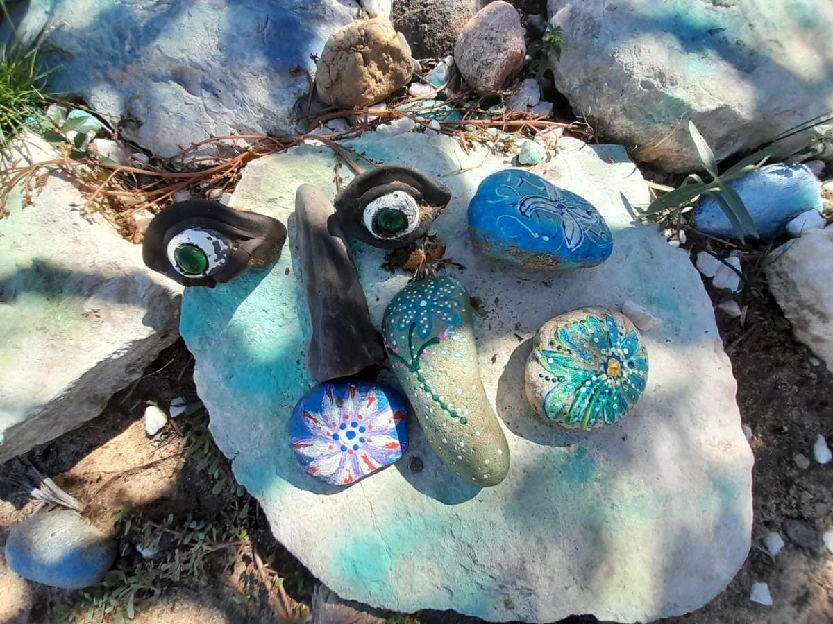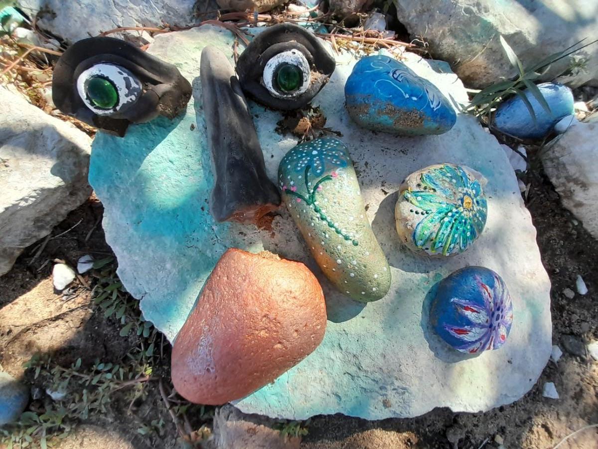 COLLECTION OF HAND PAINTED ROCKS, AND FACE FOR YOUR TREE
