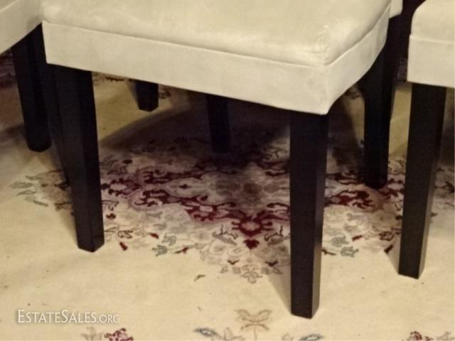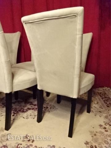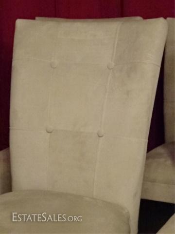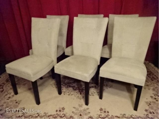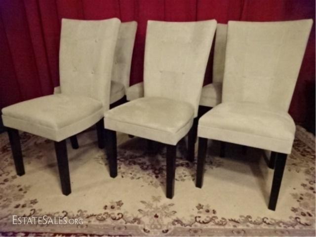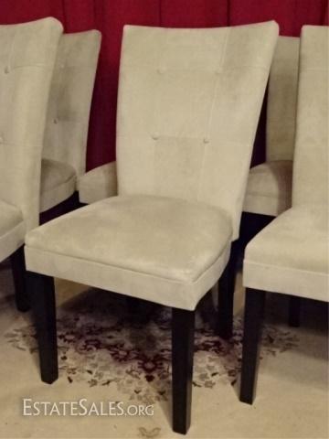 LOT 46E: 6 CONTEMPORARY MICRO FIBER DINING CHAIRS, PALE OFF WHITE / BONE UPHOLSTERY, VERY GOOD LIGHTLY CONDITION, 38" X 24" X 20", SKU385.02