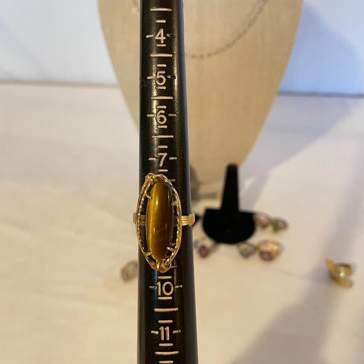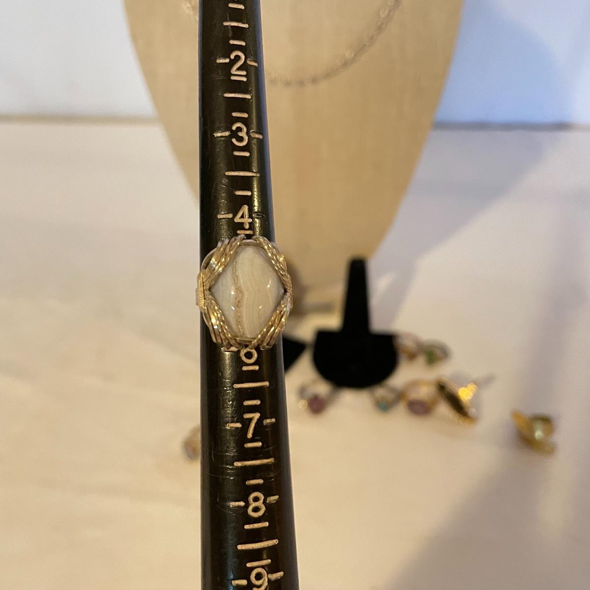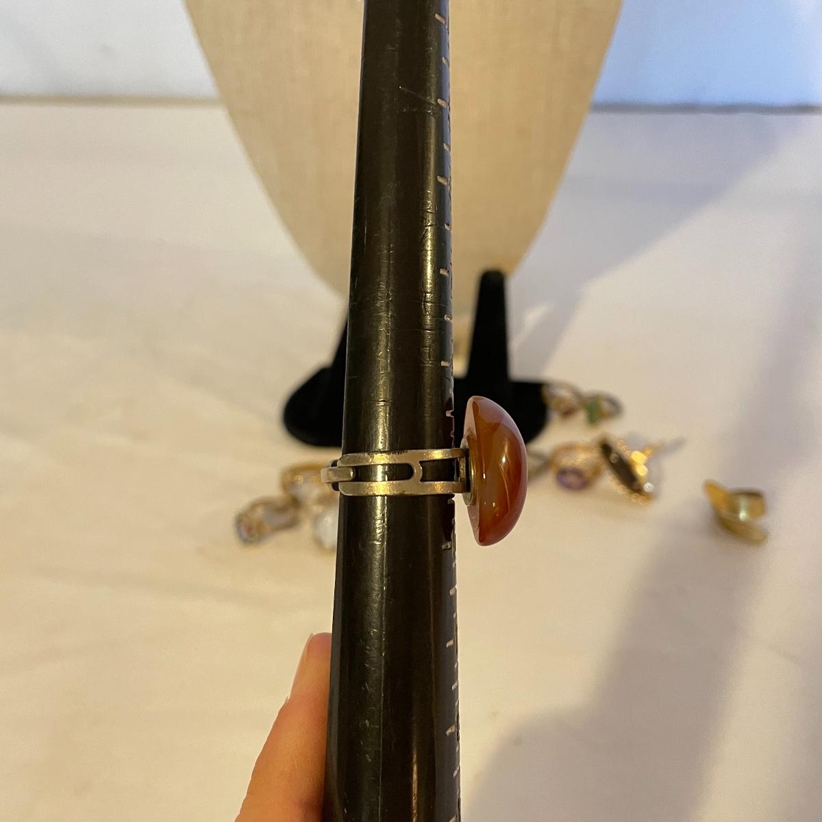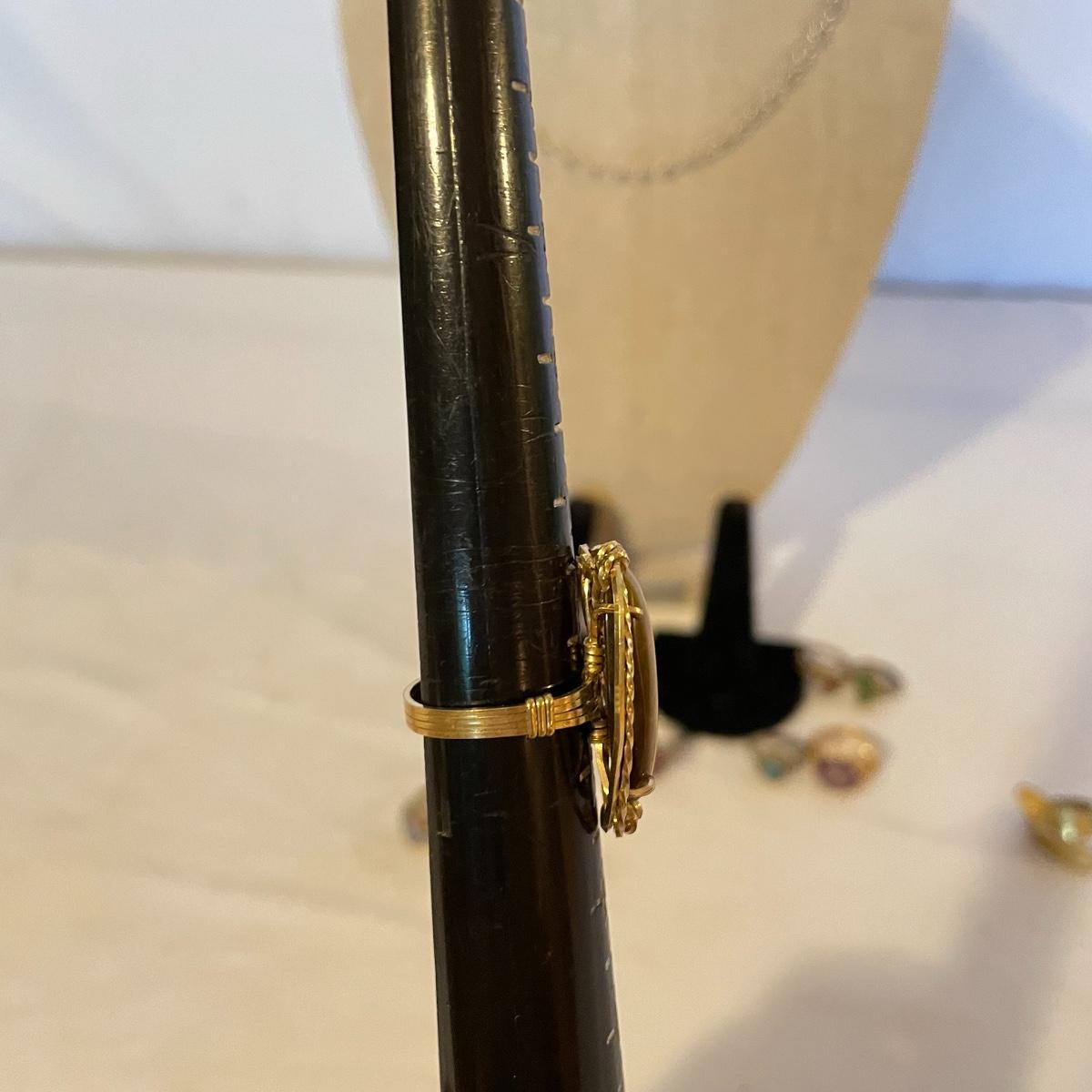 Another great selection of polished stone jewelry with a 10K cameo and 925 chain. Another two rings are marked 925, all other known markings are shown in images. Some rings are adjustable and there is even a pretty setting waiting for your own stone! A few items appear to have turquoise and a couple traditional rings have other bright beauties like a possible ruby although we certainly cannot make any claims on authenticity. There are three similar rings with iridescent centerpieces, these change colors depending on how the light hits them. See images. Shipping available.