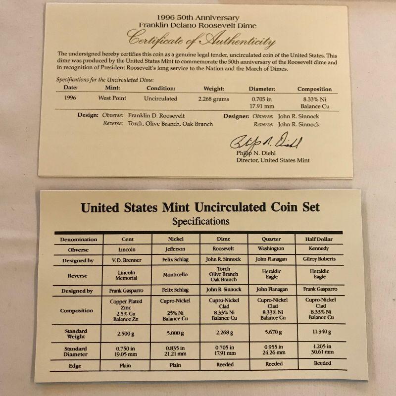 Fifty 1996 Mint Sets (includes “W” Dime)