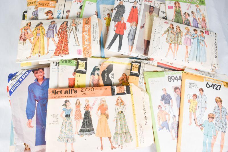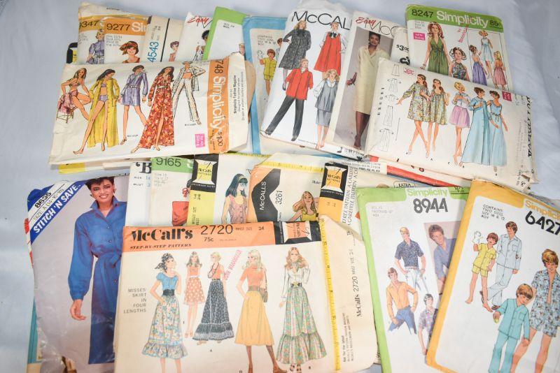 Collection of vintage patterns from the 70-80's. **Please read Terms and Conditions before placing a bid. Pick up is Sunday, December 22 from 11am to 3pm or Monday, December 23 from 4pm-7pm in Mantua, NJ. All sales are final. All sales are as is, where is. Please review all photos. Props are not included. Measurements are approximate.