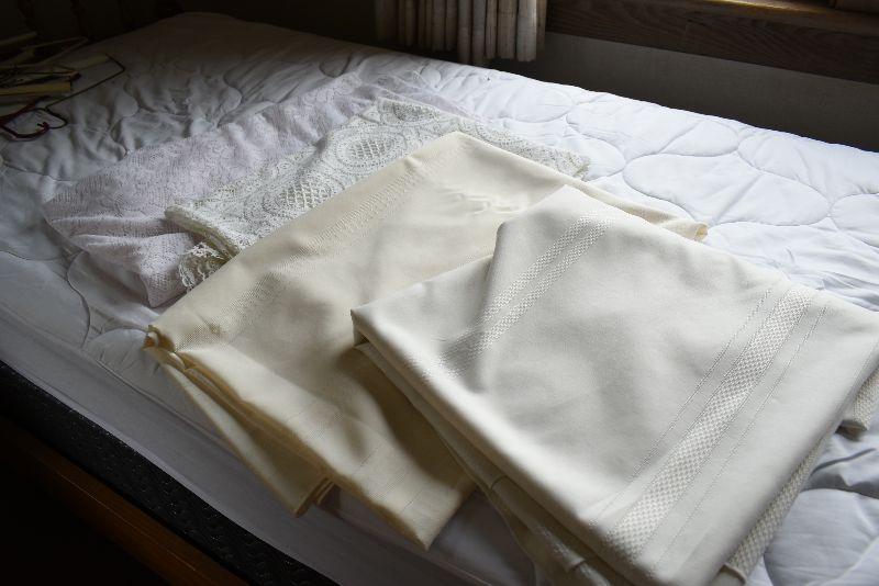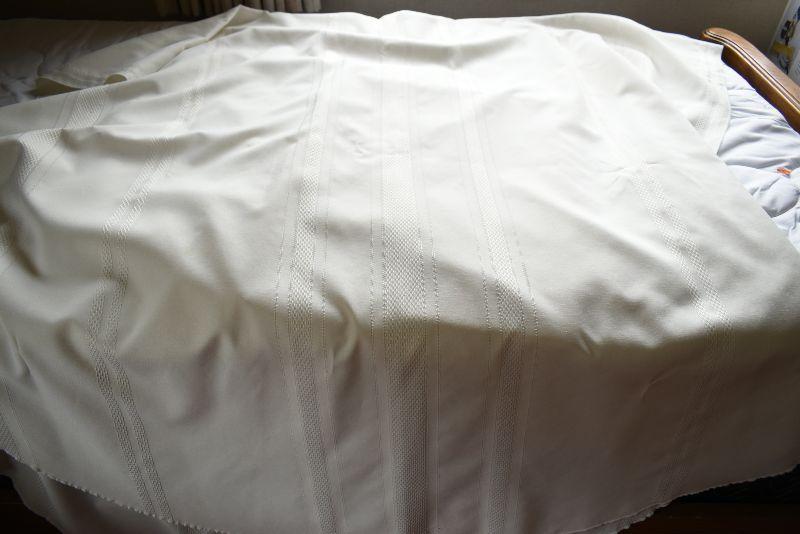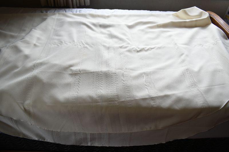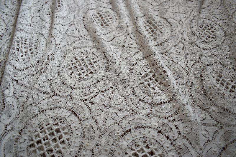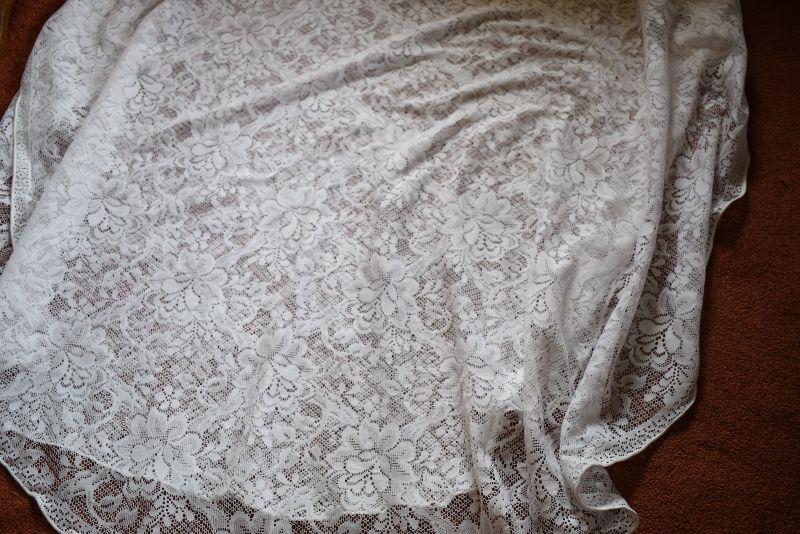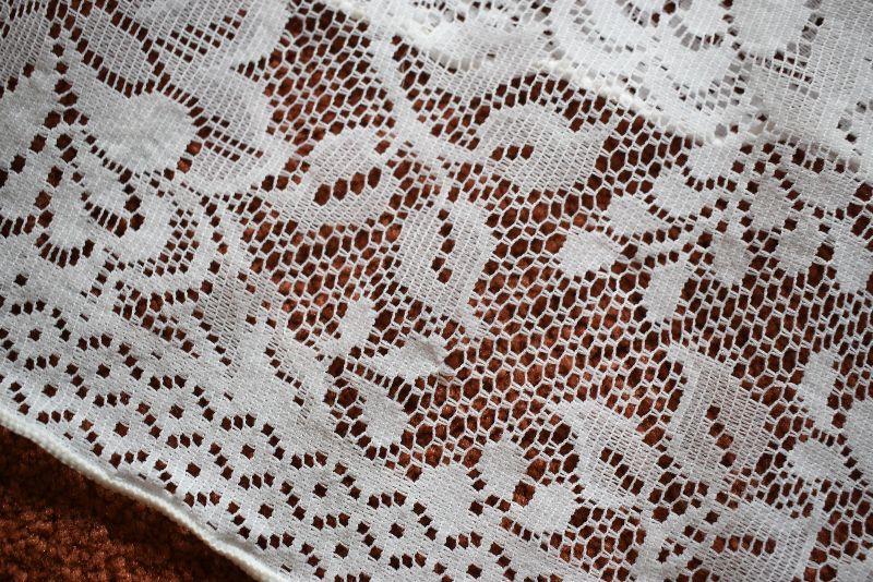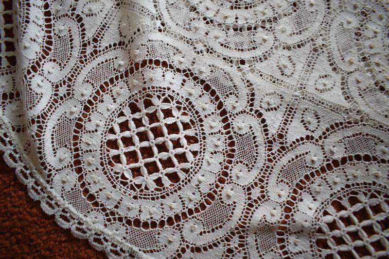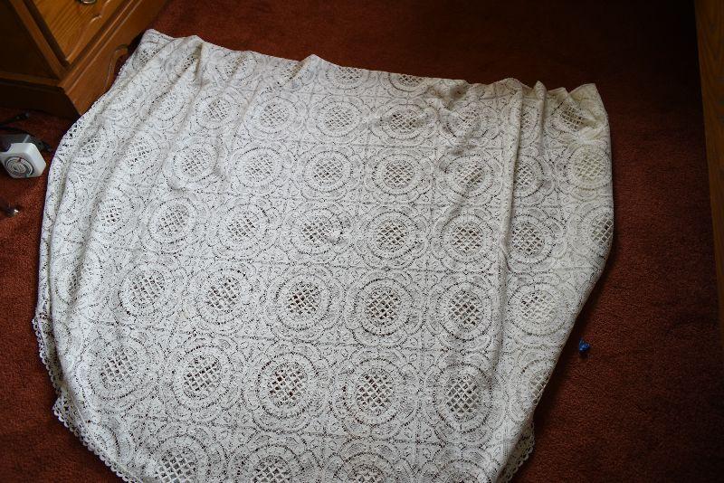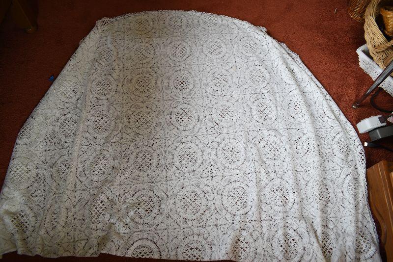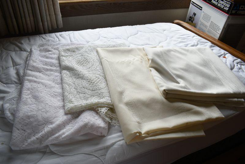 Four table cloths, two are lacy fabric. Some wear noted. 120x100