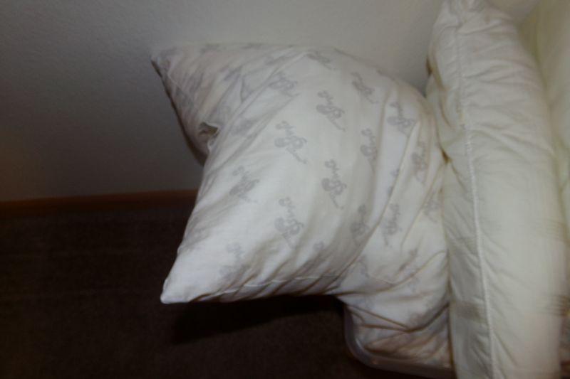 LANDS END COMFORTER, SUPER SOFT THROWS AND QUEEN BLANKET, BED PILLOWS INCLUDES "MY PILLOW" AND A FEATHER PILLOW