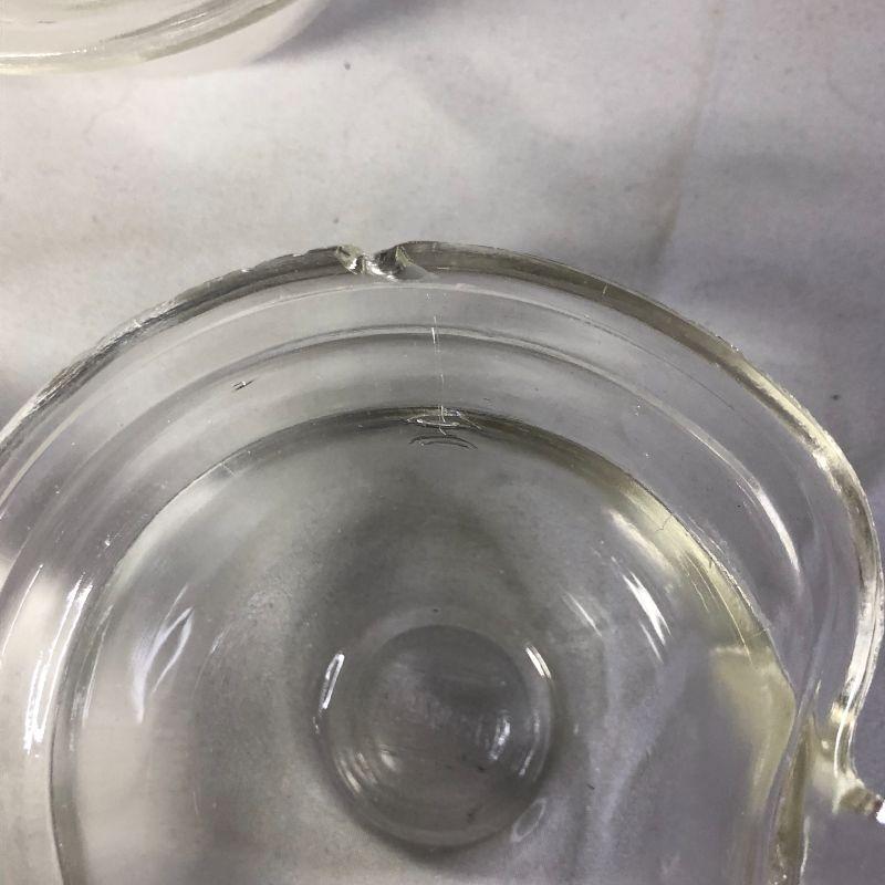 One of these has a small chip on the rim and two have rims that have rough edges. All could be smoothed out using a nail emory board. Theyn are just under 2.5" tall. If you're not into baking, imagine the ice cream sundaes you could use these for!