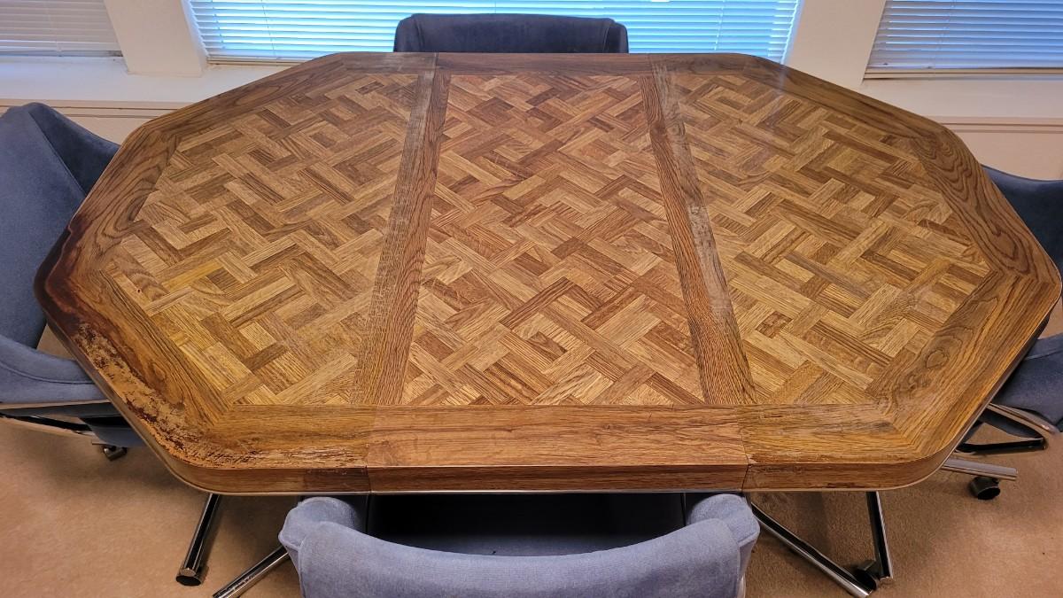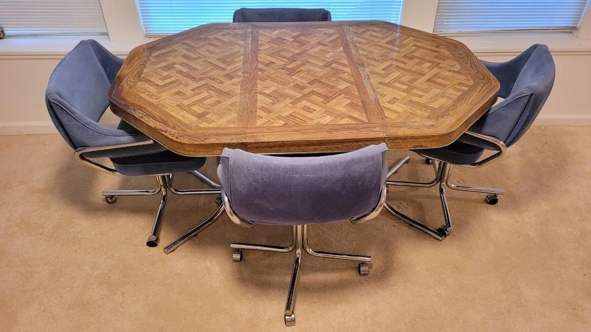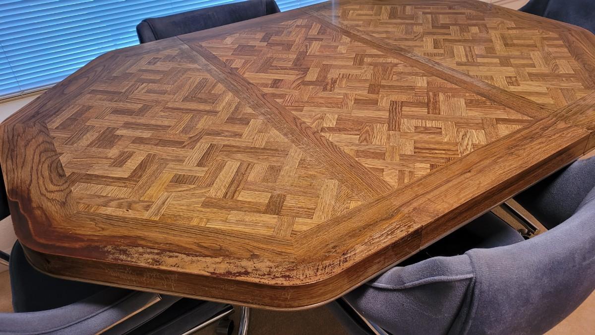 Lot 47: Vintage Wood Dining Table w/ 4 Chairs ●● 29" x 59" x 42"