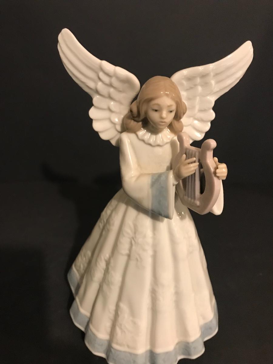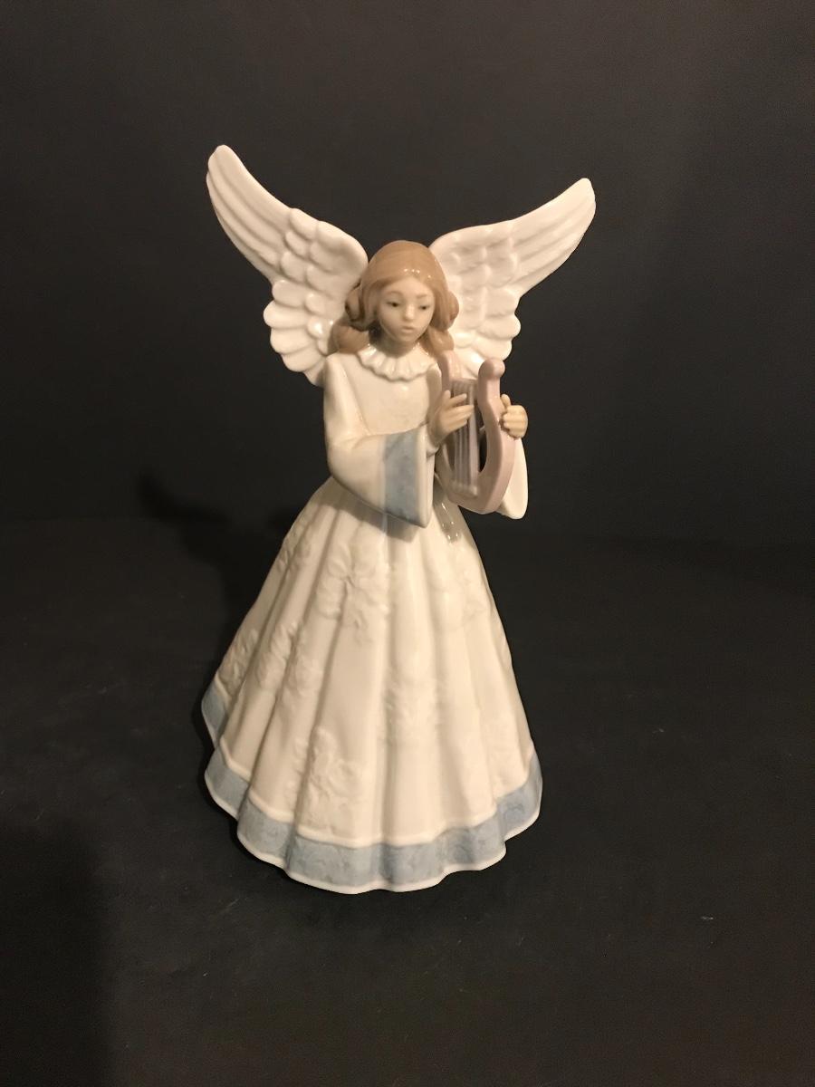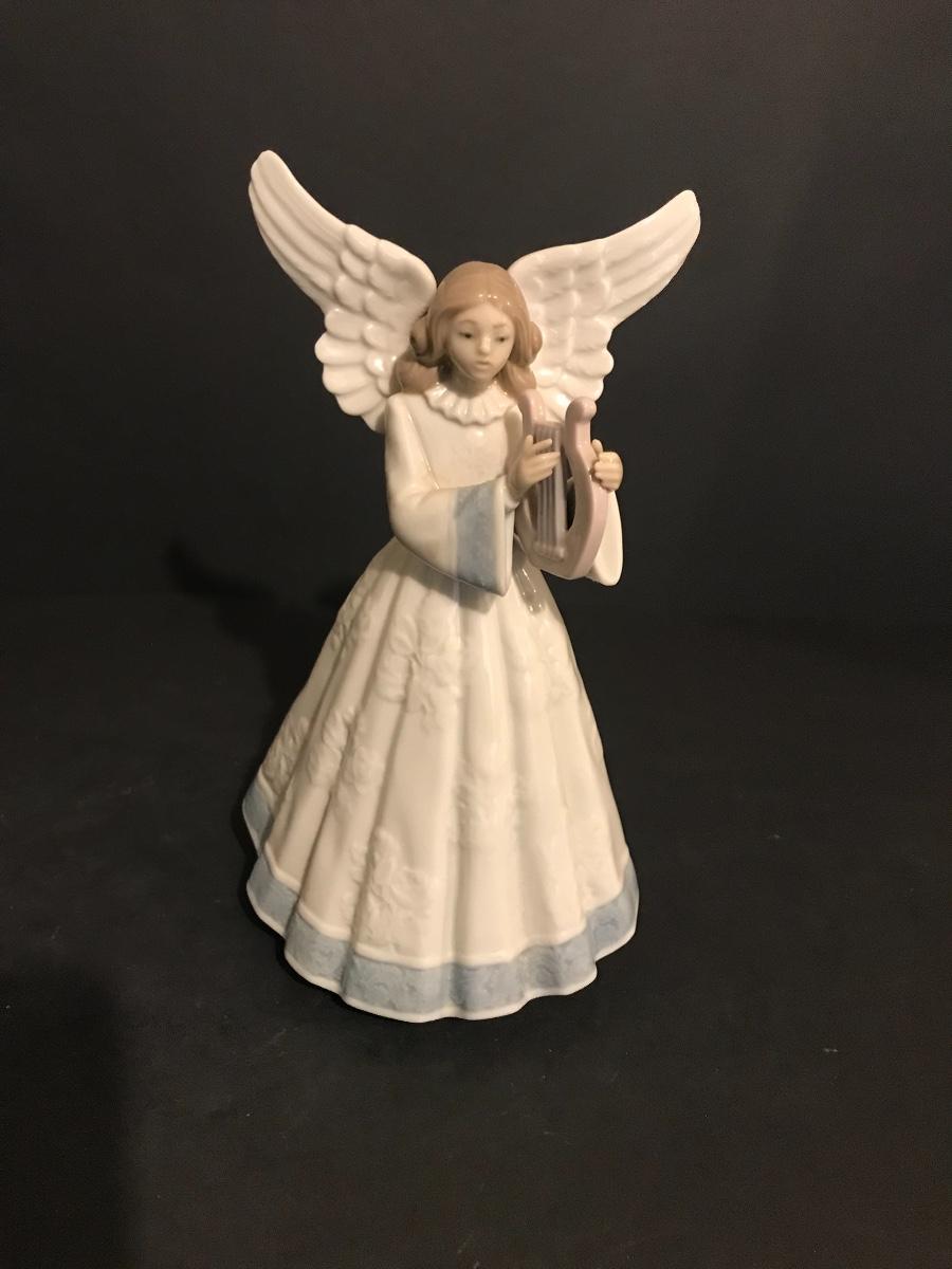 Heavenly Harpist Tree Topper #5830. All Lladros are in excellent vintage condition without original boxes, except where noted. All items have been inspected and any damages or imperfections have been photographed and noted to the best of our knowledge and ability. It is the responsibility of the buyer to inspect all pictures, as they are the best representation of the items. The pictures show condition, measurements if taken, and what is included in the lot. Upon pickup, it is the responsibility of the buyer to inspect their items prior to leaving the premises. Once the items leave the premises, there will be no refunds or returns. Buyers are also responsible for bringing their own boxes and packing materials for their items. Thank you.