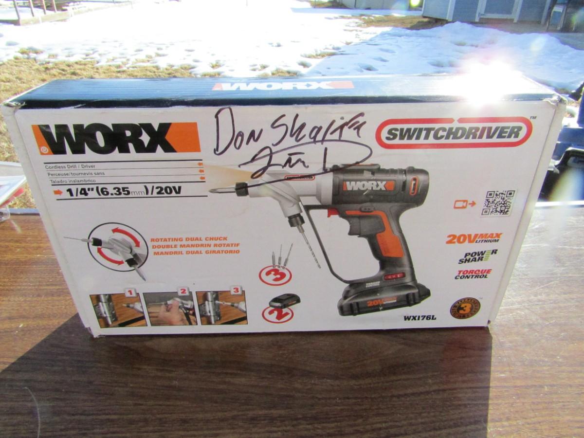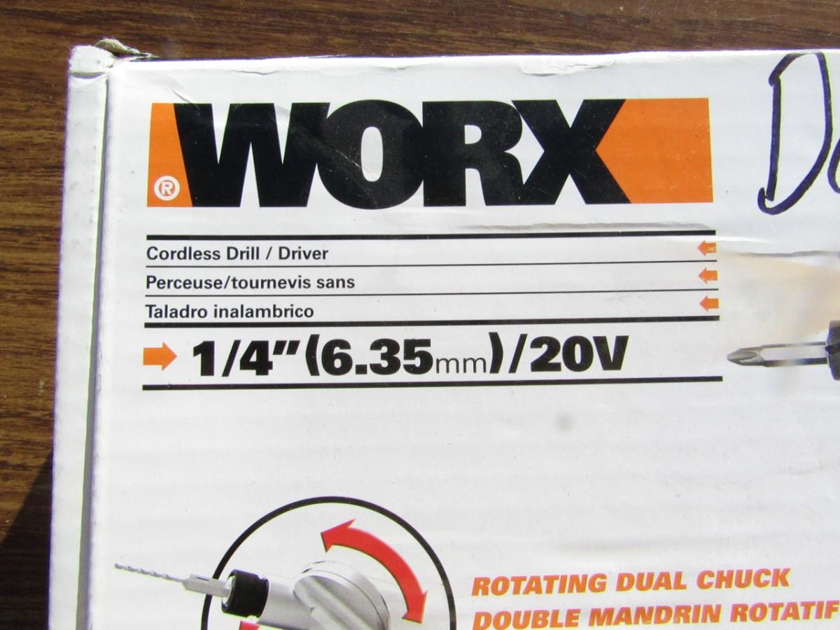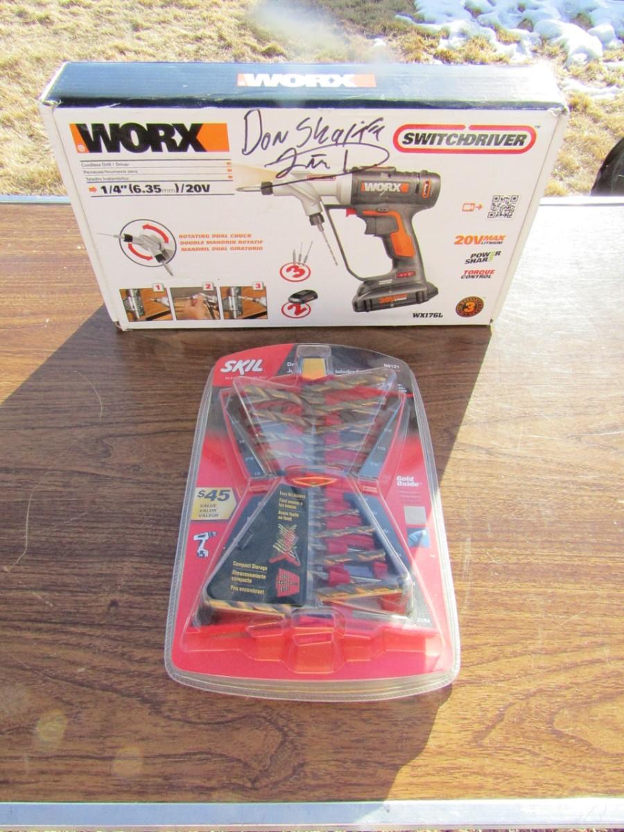 LOT 165 NEW WORX 20V SWITCH DRIVER CORDLESS DRILL/DRIVER AND DRILL BITS