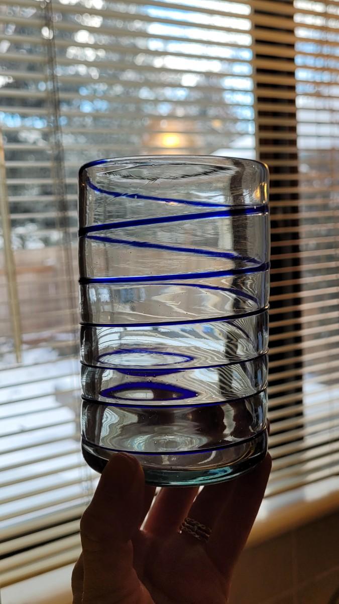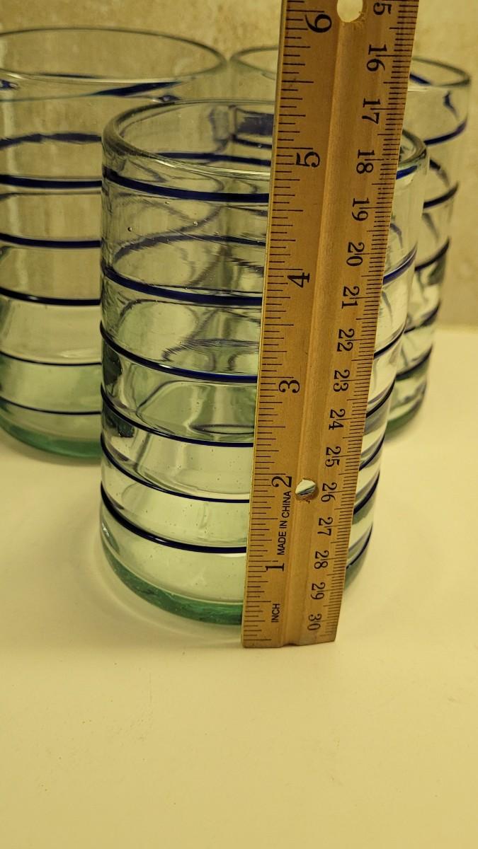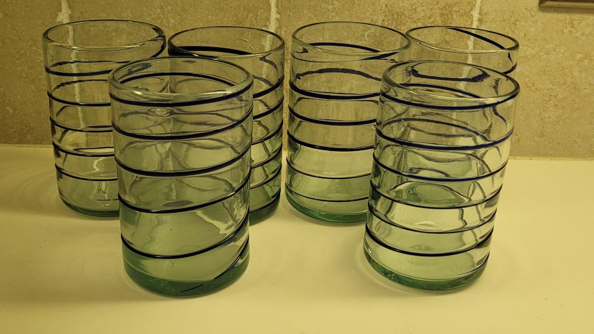 Lot 47: (6) Blown Clear Glasses with Cobalt Swirl