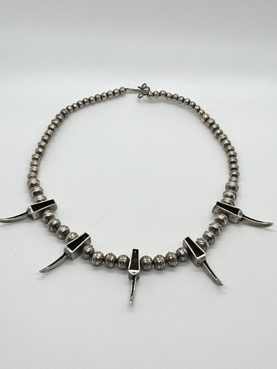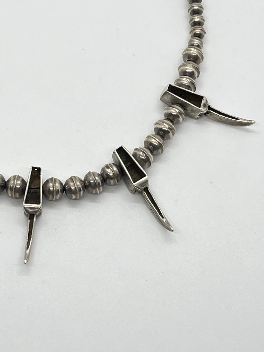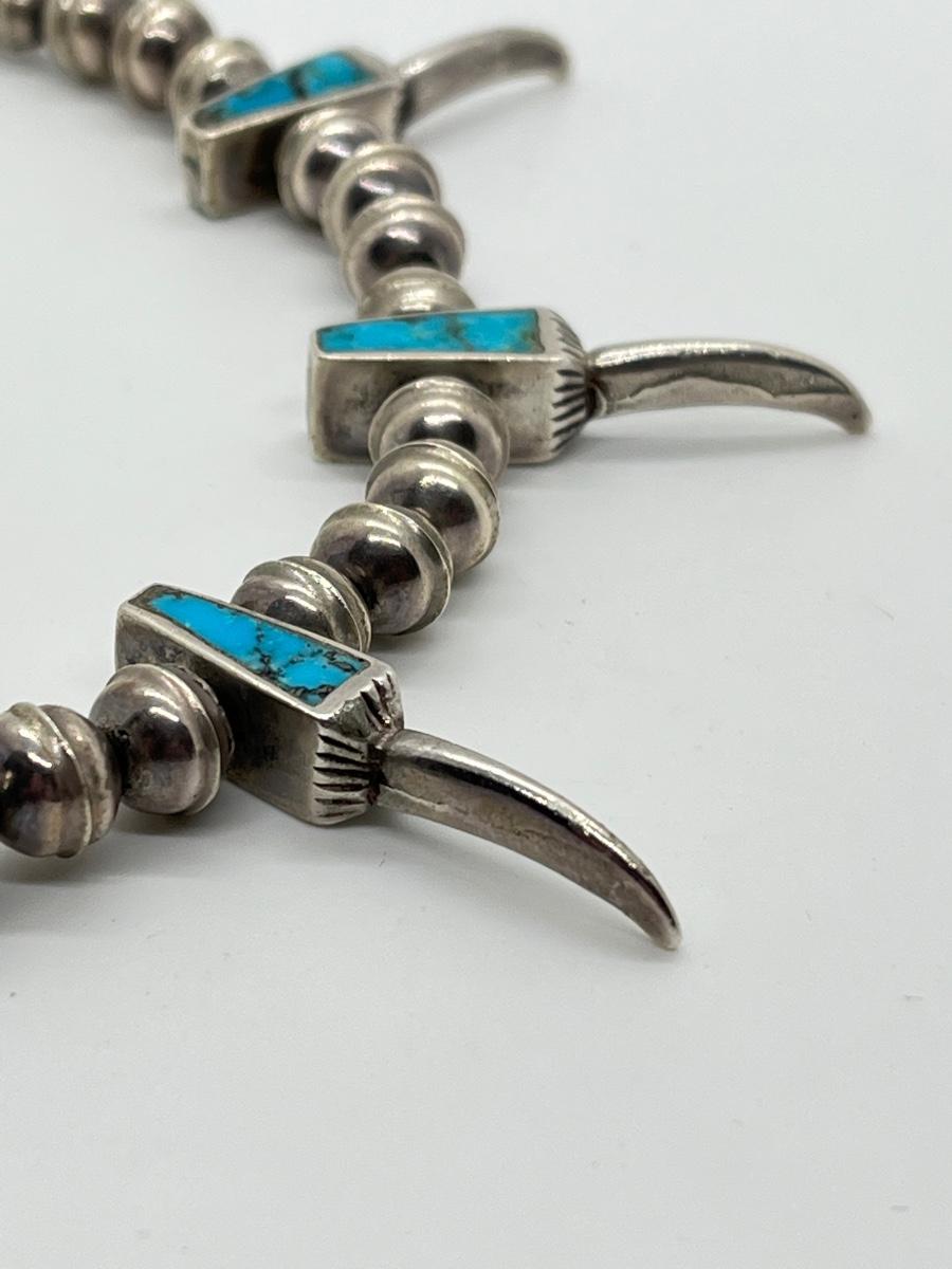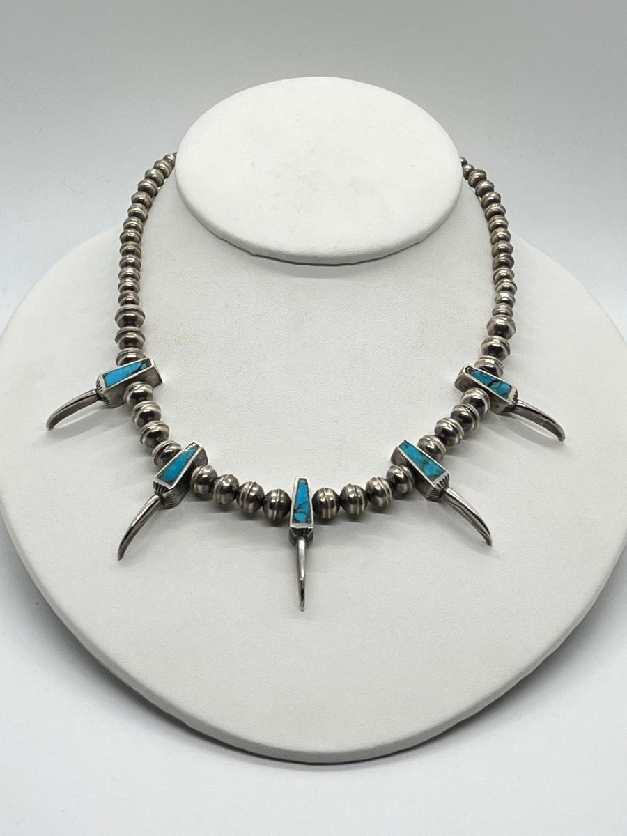 LOT 47: Navajo "Eagle Talon" Turquoise & Sterling Silver Bench Bead 17" Necklace - 38.3 grams total weight