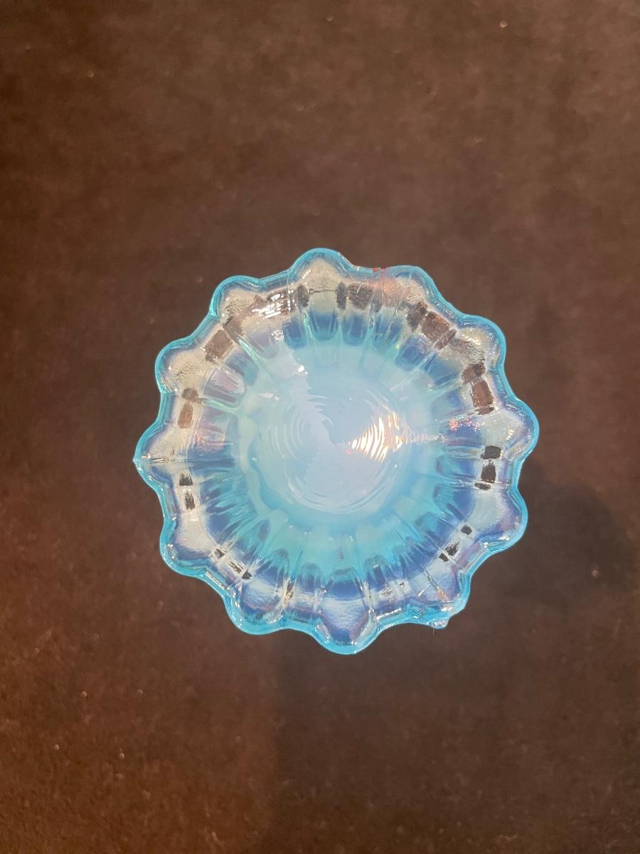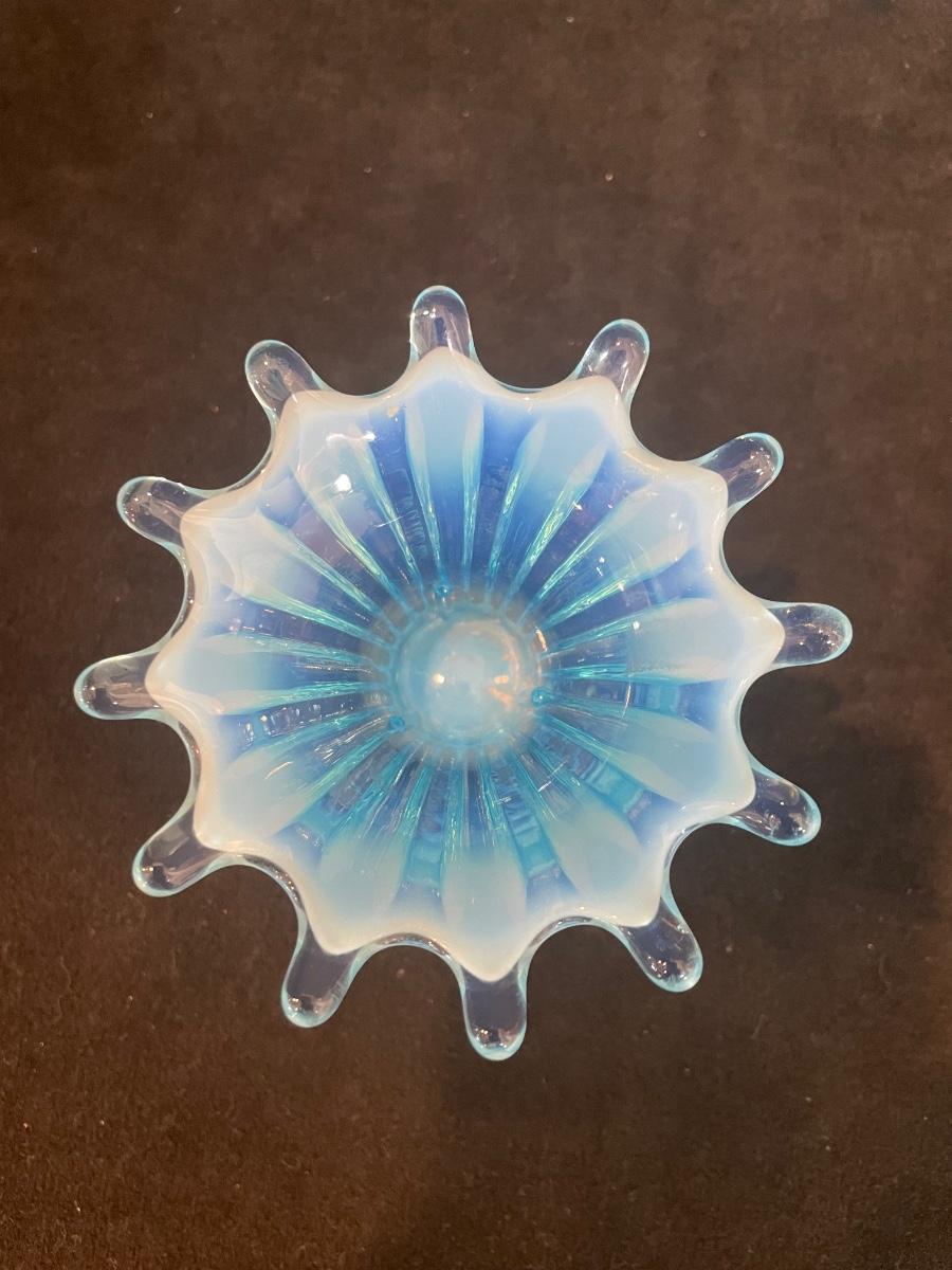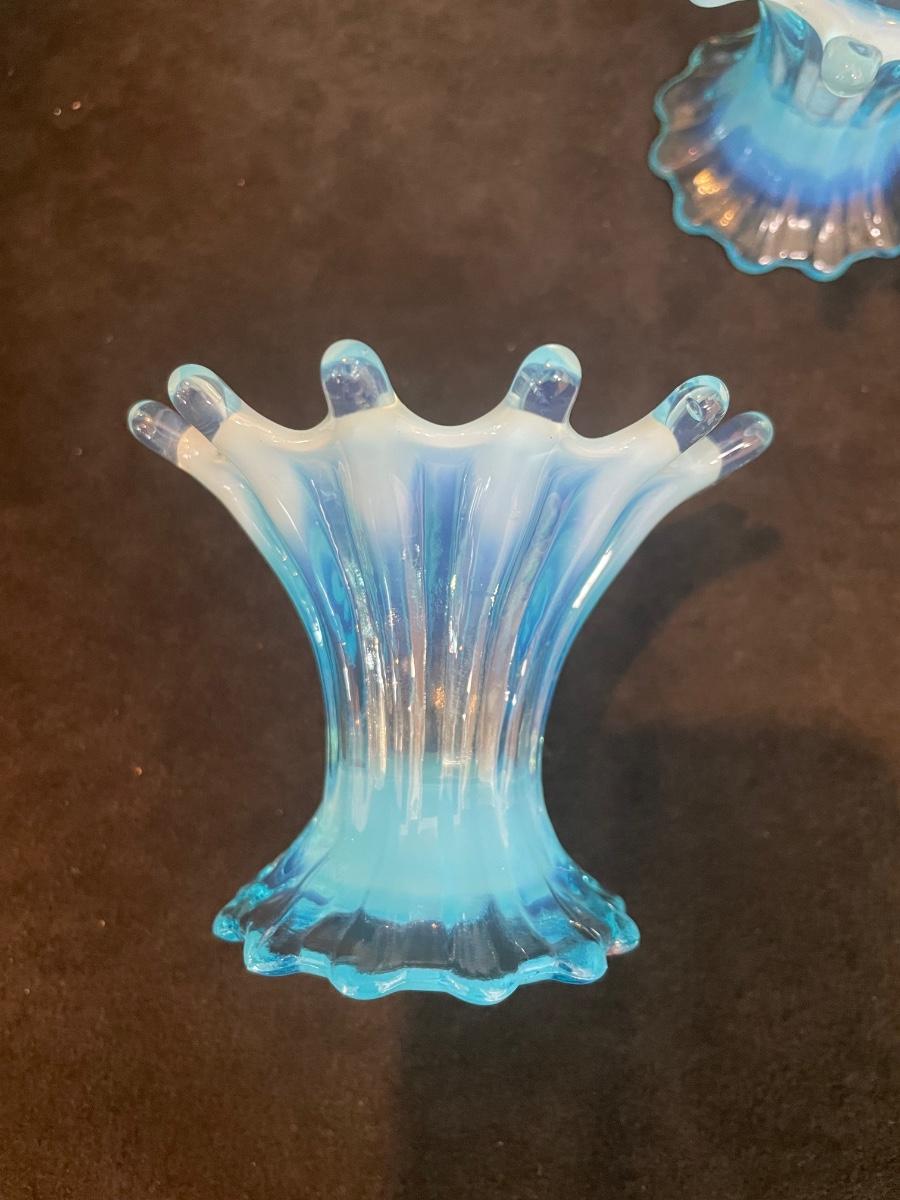 Set of 2 Blue Fenton glass candleholders