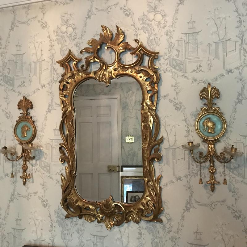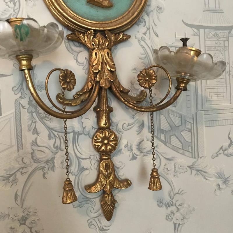Lot 47 - Antique Gold Mirror and Wall Candle Scones