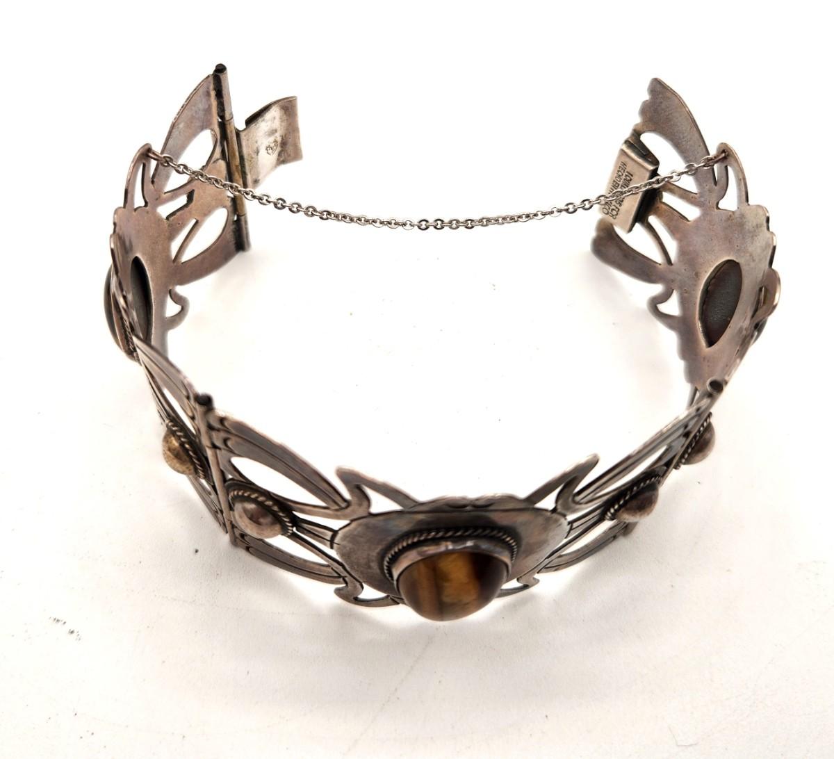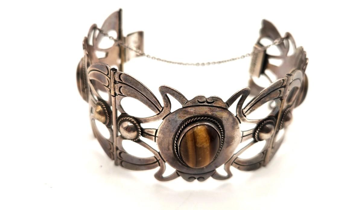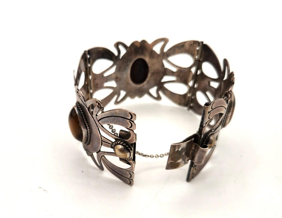Lot #47 Beautiful Mexican Sterling Silver (marked) Bracelet set with Tiger Eye