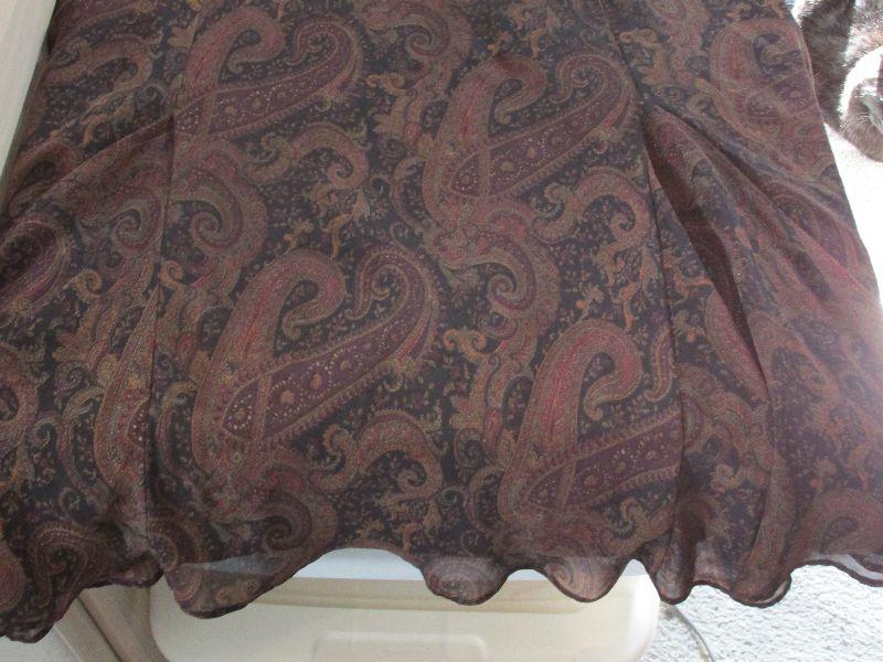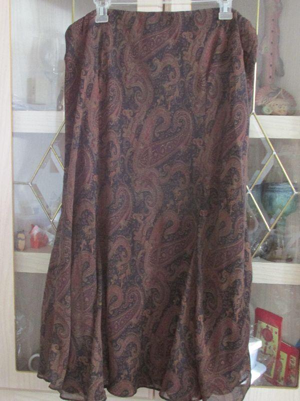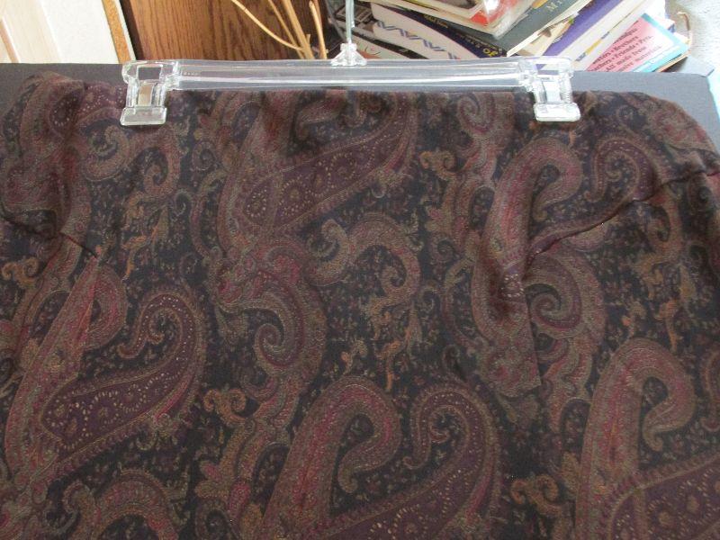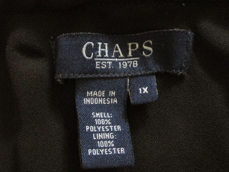 Brown and black patterned Chaps Skirt. Size 1X. 100% Polyester. No significant wear noticed.