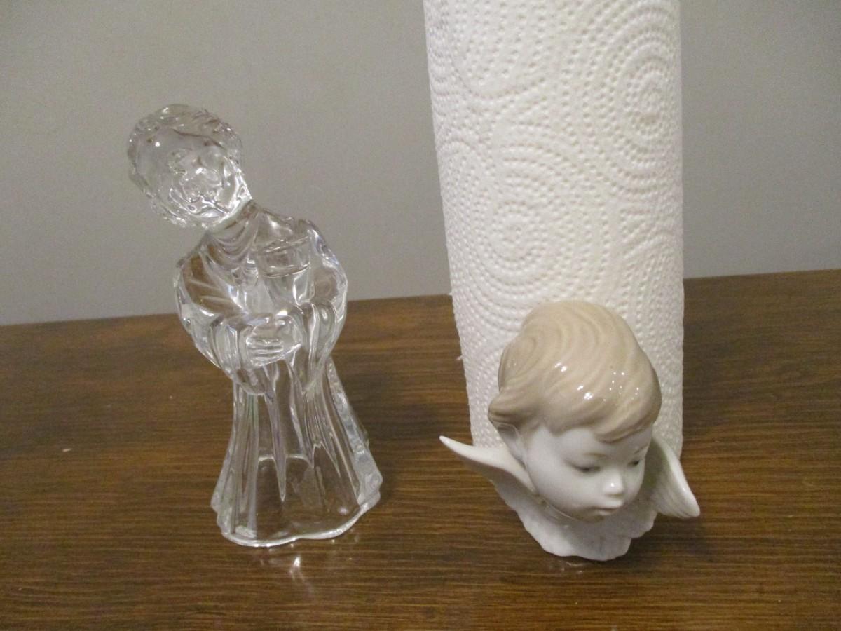 Lot 47 - Crystal Angel Candle Holder & LLADRO Angel Head