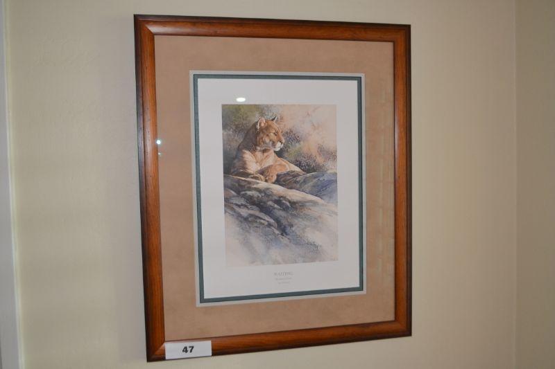 LOT 47.  FRAMED MOUNTAIN  LION PRINT