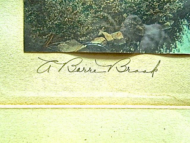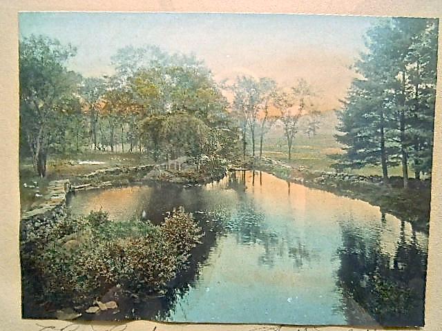 Original signed and framed Wallace Nutting photograph "A Barre Brook". Frame measures 16 x 13. Not thought to be original frame. Circa 1915-25 hand-colored photo.