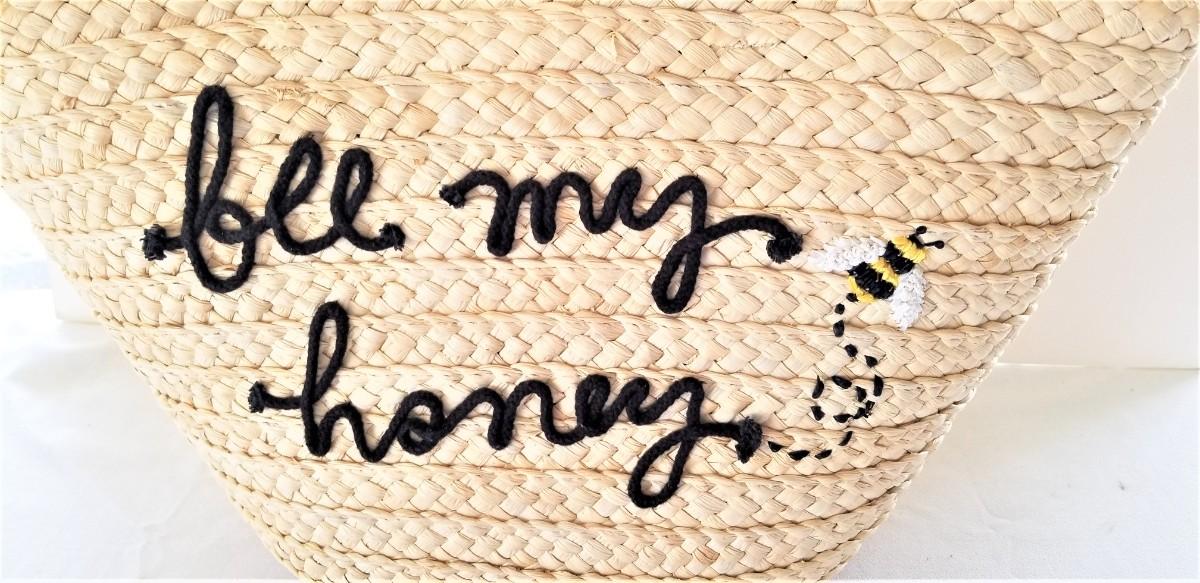 Gently used "Bee my Honey" handbag from KATE SPADE - fun summer bag - use as a purse or on the beach. 14" tall (not counting handle), leather straps, 19" across.