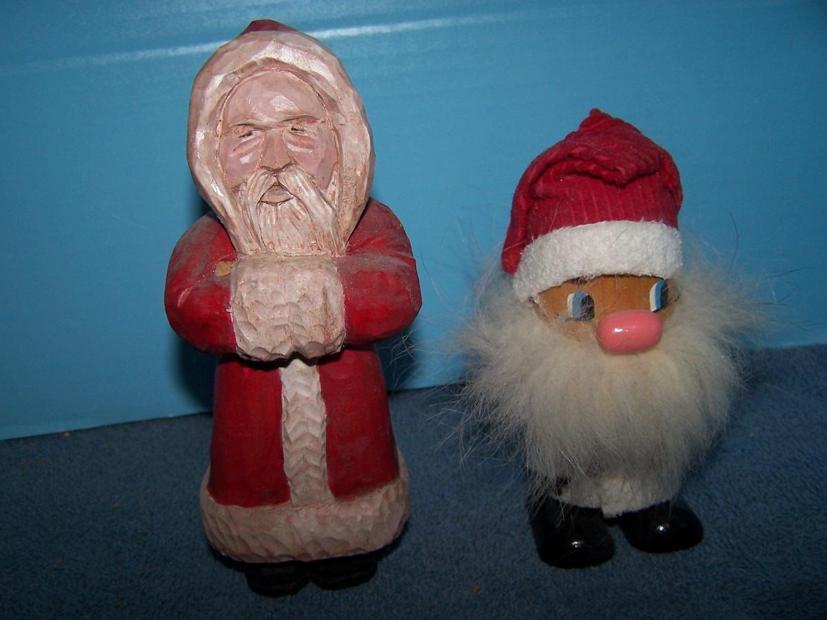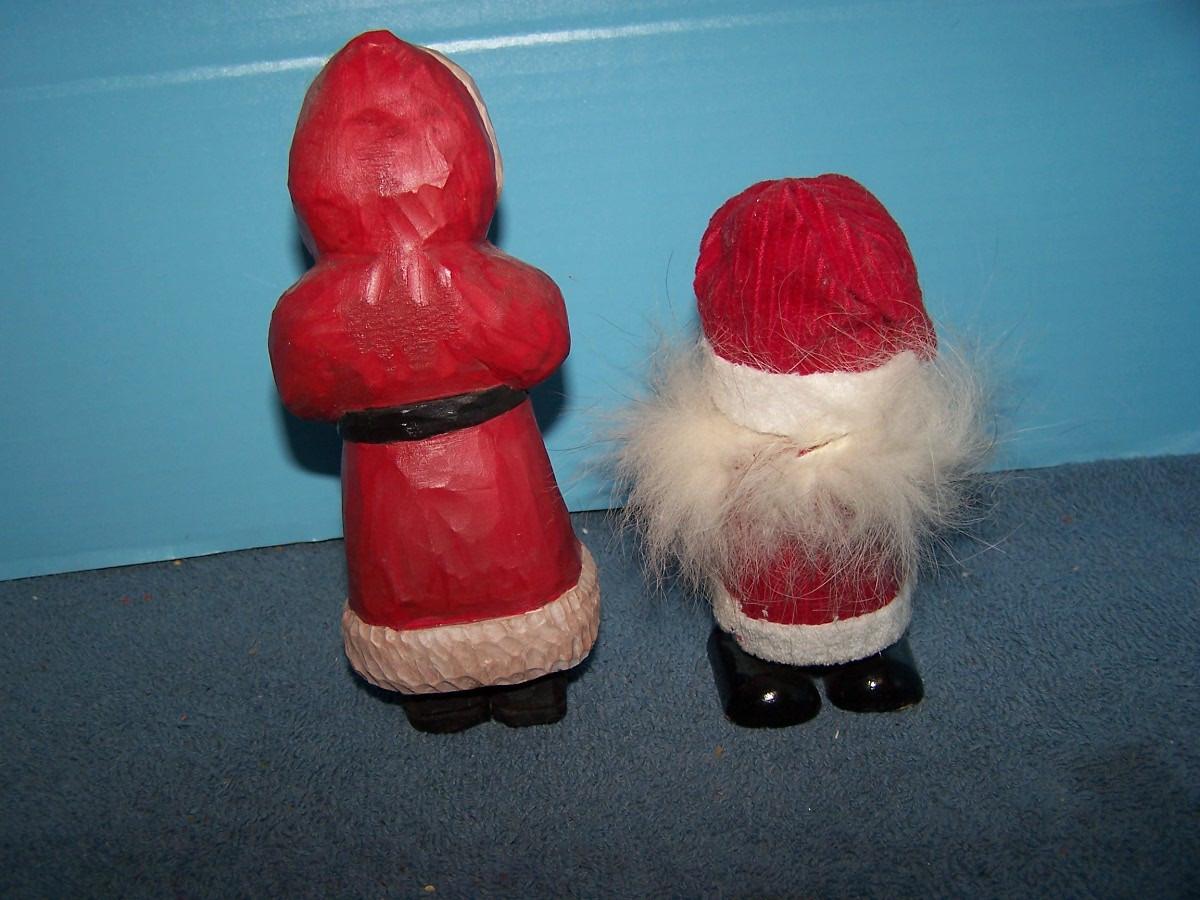 GREAT COLLECTABLE CARVED/WOODEN SANTAS!!! CARVED SANTA IS 6 3/4'' TALL.. SLIGHT WEAR..