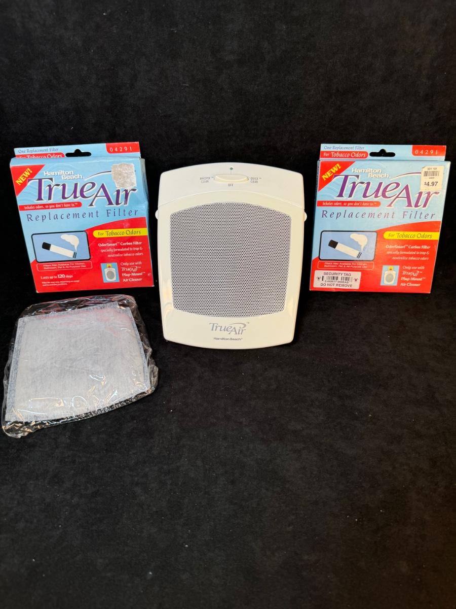 Includes Hamilton Beach True Air Plug-mount Air cleaner model 04271and 2 replacement filters.