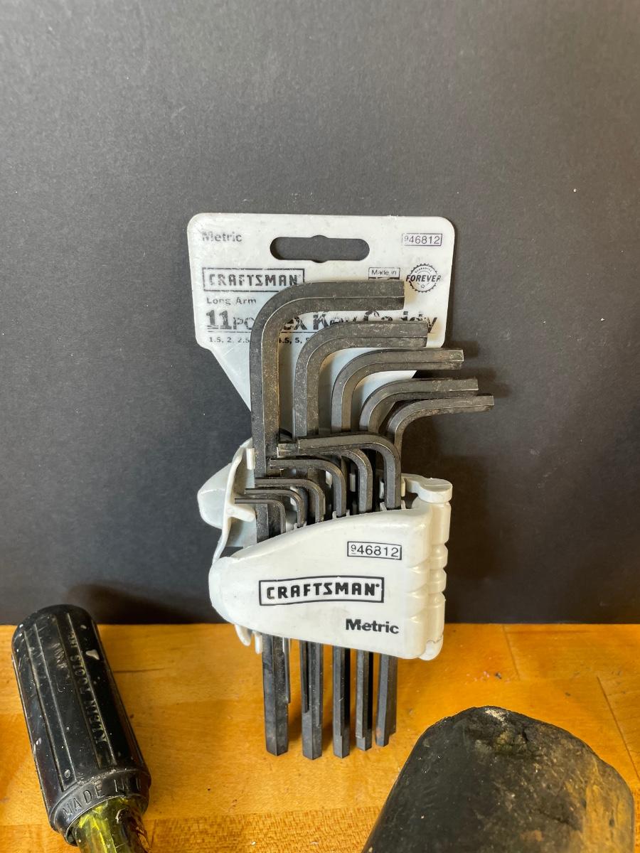 screwdrivers, 25' tape measure, pliers, lopper, Allen wrenches, mallet