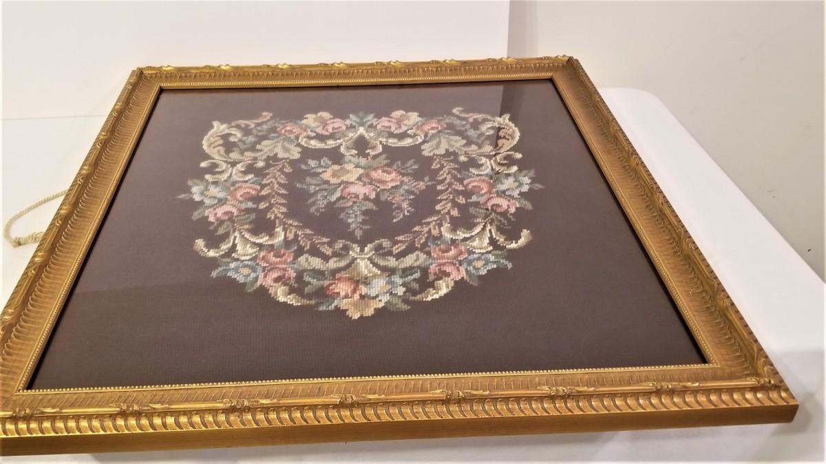 Lot #47 Large Needlepoint in Gilded Frame - GORGEOUS