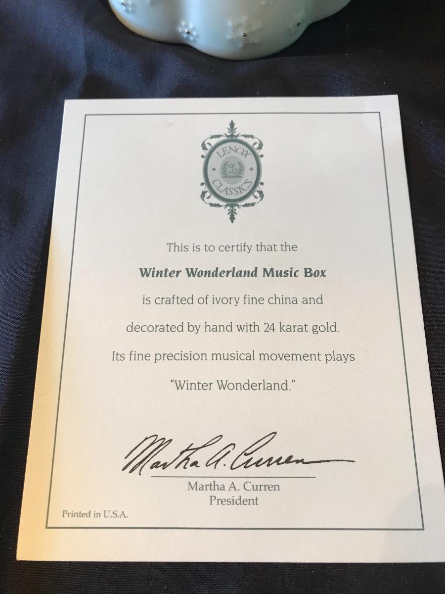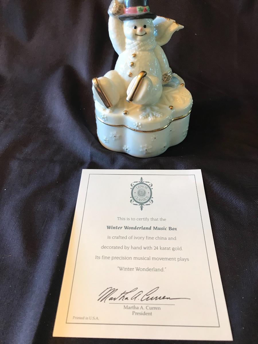Lot 47: Lenox Music Box Winter Wonderland Snowman With COA
