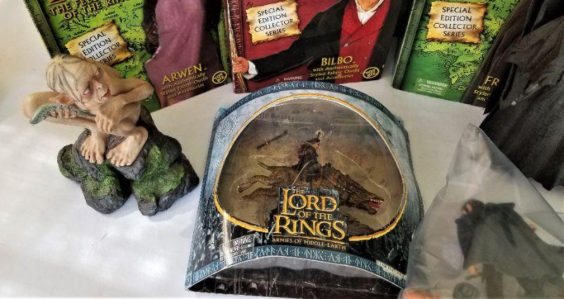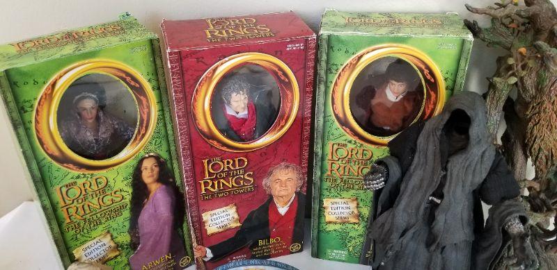 You get all you see here: Smeagol, Morannon Ore on Warg - 7 pieces + bag lot, as shown. Dolls in boxes have been gently played with. Figure on blister card is unopened.