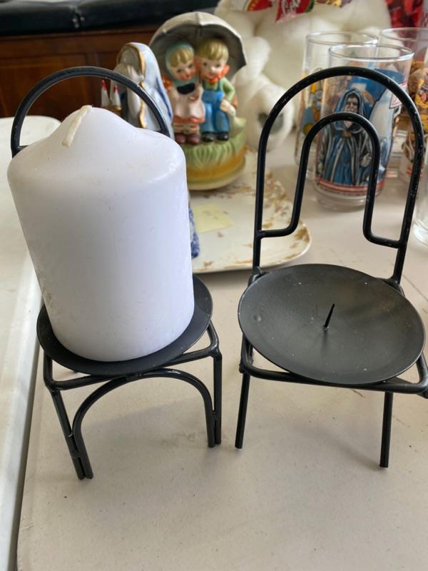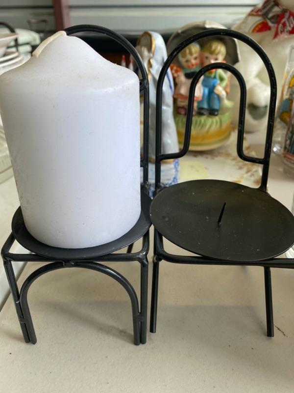 Lot 47 Metal Chair Candle Holders (2) (1 with Candle)