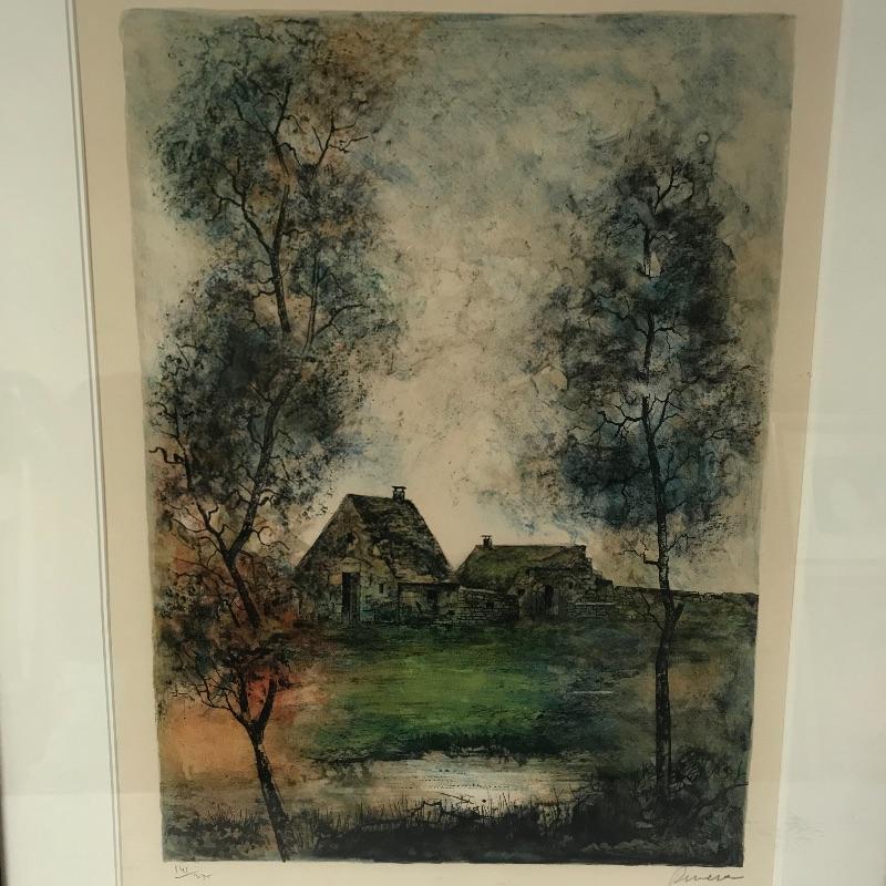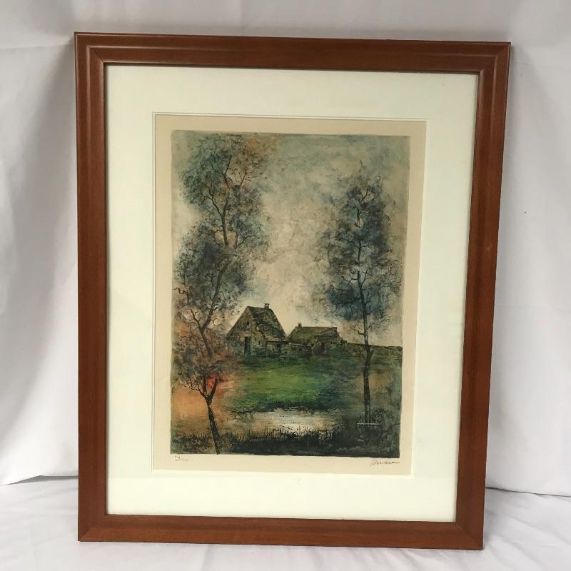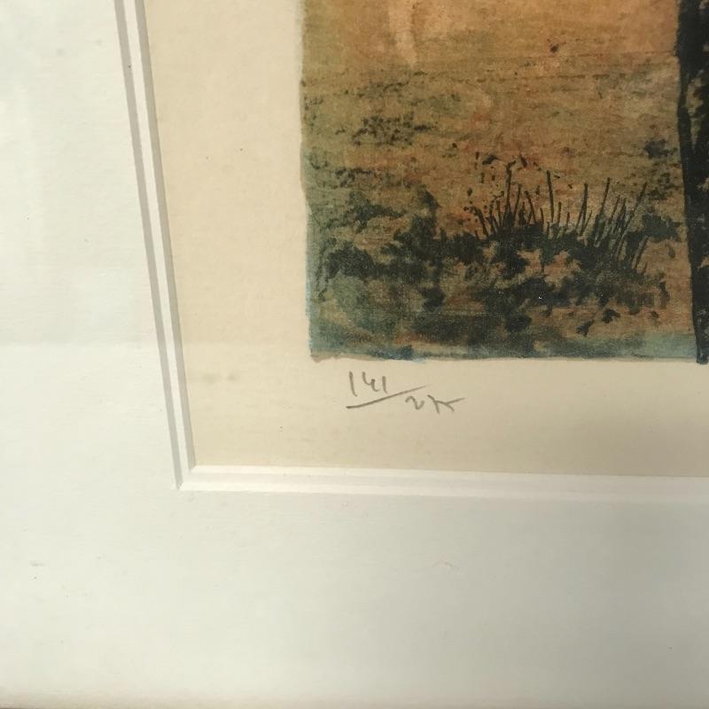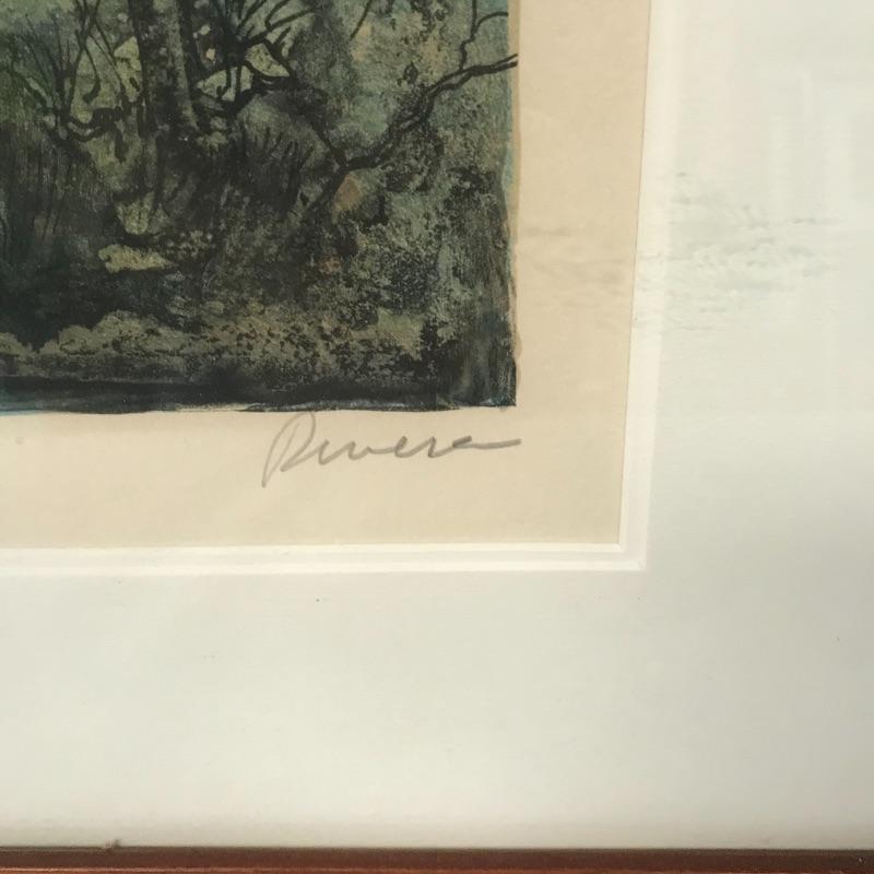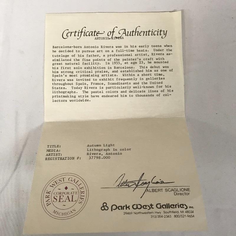 Framed Antonio Rivera lithograph signed and numbered with COA in envelope taped to backside. Wooden frame has a few blemishes, but overall it is very nice, measuring 25” x 30”. Art is behind matting and glass.