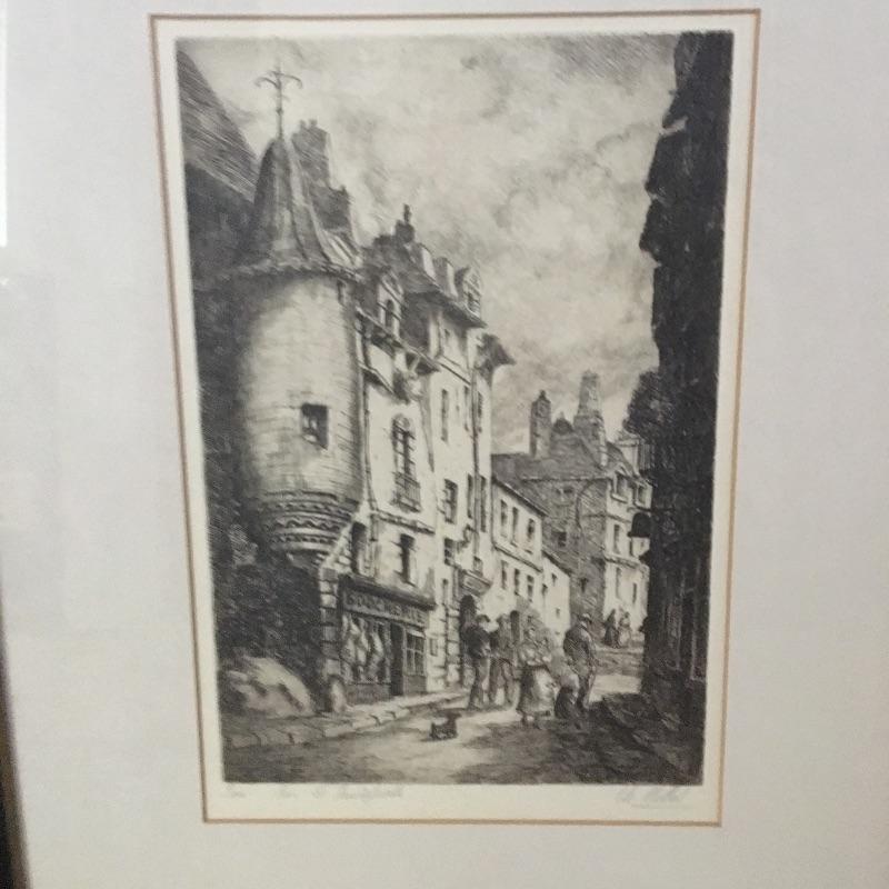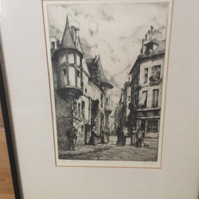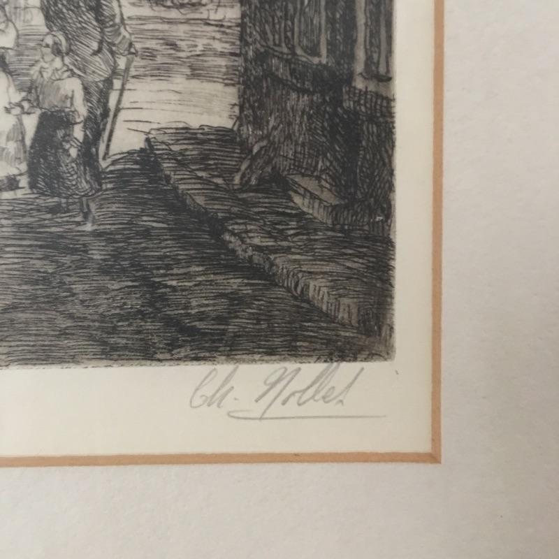 Pair of signed and framed Charles Nollett etchings of Paris. A great pair of etchings of Paris in days gone by. Frames measure 15.5” x 23”.