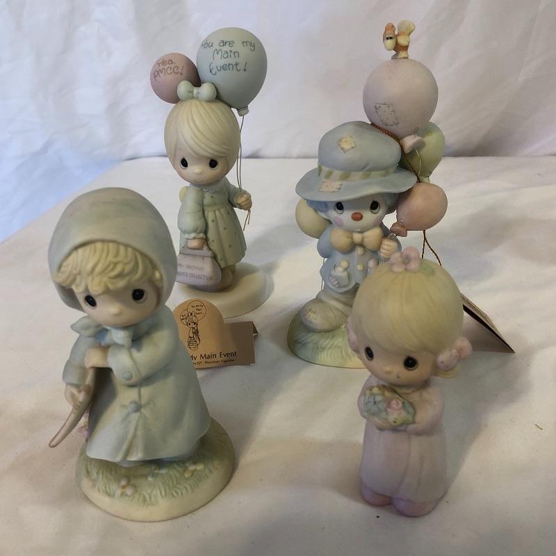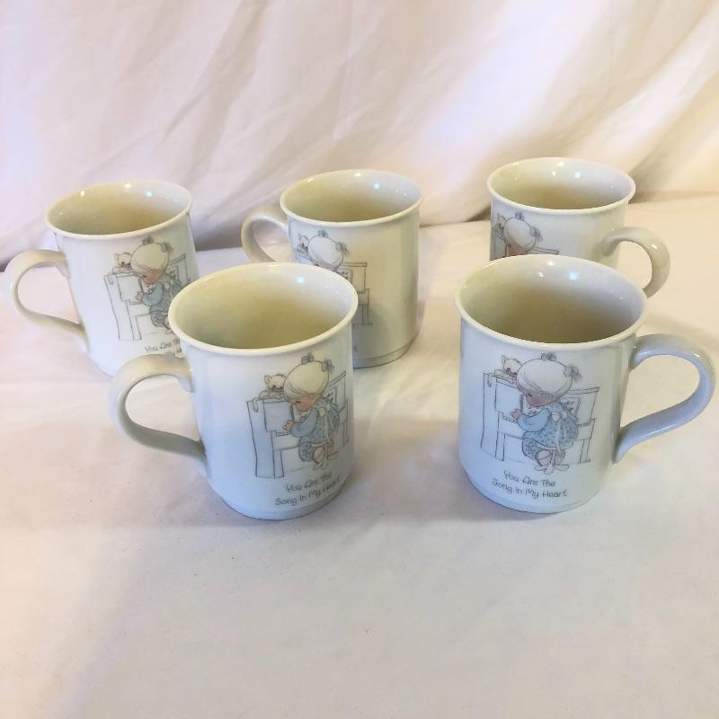 Enjoy your hot beverages in these five precious moments musical cups which read, “You are the song in my heart.” All 5 cups are in good condition with no chips or cracks. Four of five cups have music boxes! Gift someone for the holidays with these four Precious Moments figurines. Two of the figurines are brand new and in their boxes. Shipping available.