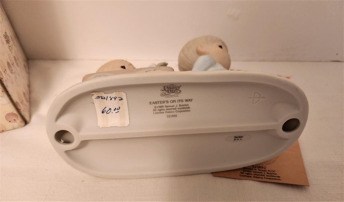 Precious Moments figuring, 1989 "Easter is on Its way, Design #521892, 6" long, original price 60.00. Comes with box and hang tags.