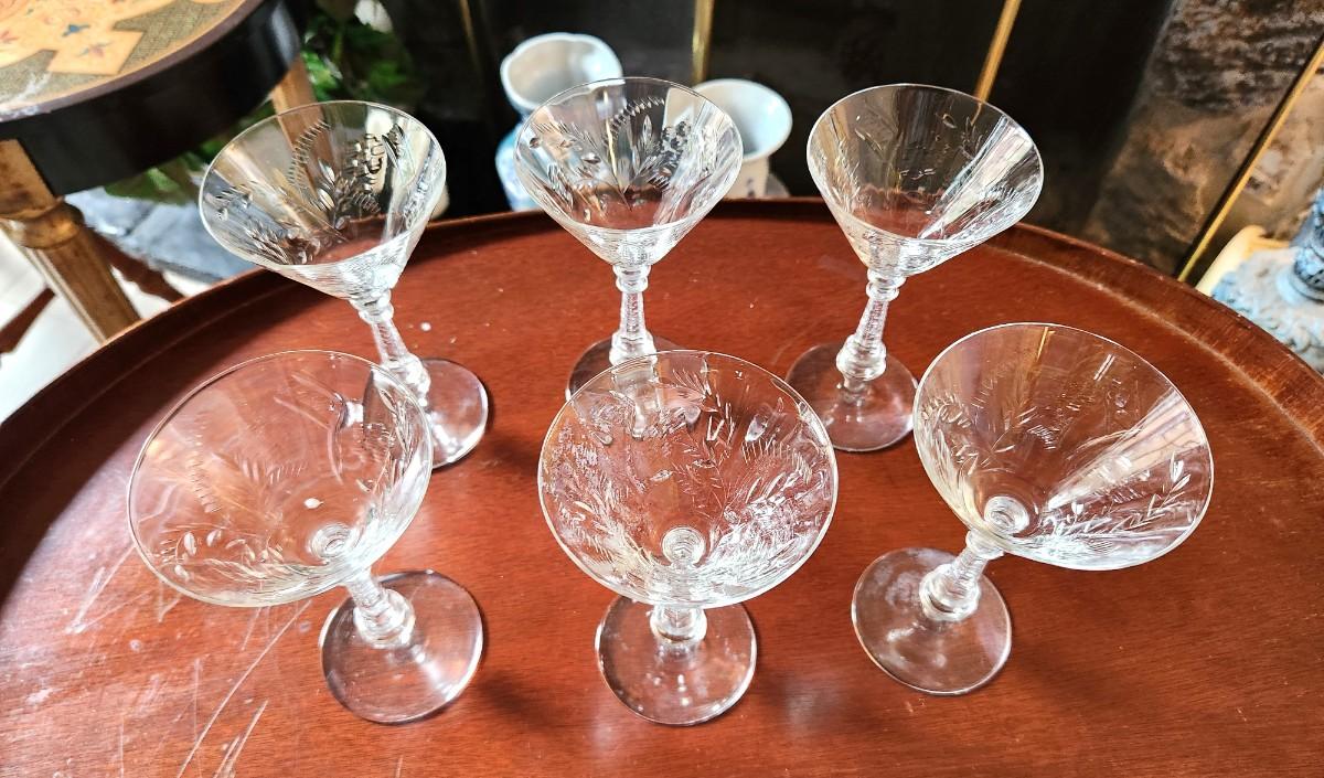 Lot #47 Set of 6 Vintage Crystal Cordial Glasses