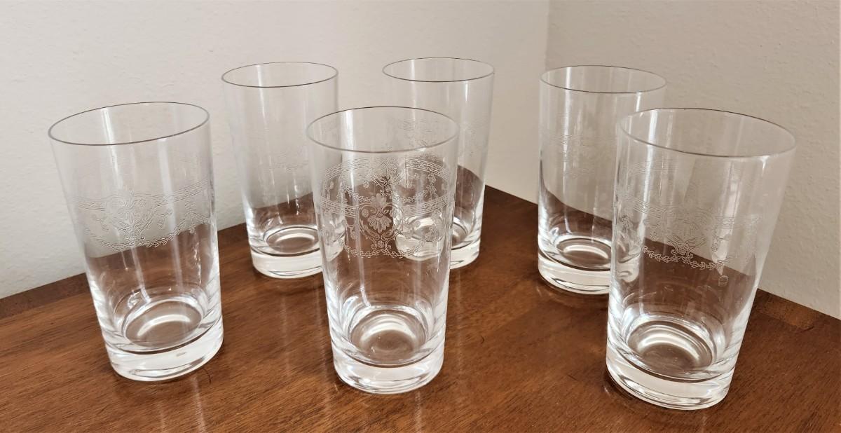 Lot #47 Set of 6 Vintage Etched Crystal Drinking Glasses
