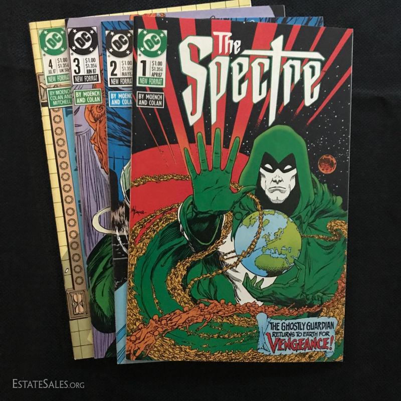 7 issues of "Silver Surfer" by Marvel. Includes Vol. 2 No. 1, December 1979 and Vol.3, No.1, July 1987, 19 Issues of "Spectre" by DC Comics, 15 Issues of "Marvel Super Heroes Secret Wars" by Marvel (includes all issues of 12-series with some duplicates), 2 Issues of "The Silent Invasion" by Renegade Press, 2 Issues of "Squadron Supreme" by Marvel, and 4-Issue series of "Six from Sirius" by Epic Comics. Also some single first issues in this lot. See photos. 58 total issues in the lot. Fits in ONE Priority box or local pick up in Asheville, NC.
