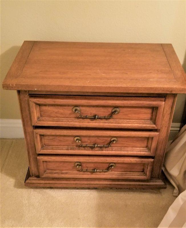 Single solid wood Thomasville nightstand. 16" deep, 27" across, 24" tall. Good condition - has a couple of small flakes missing on top.
